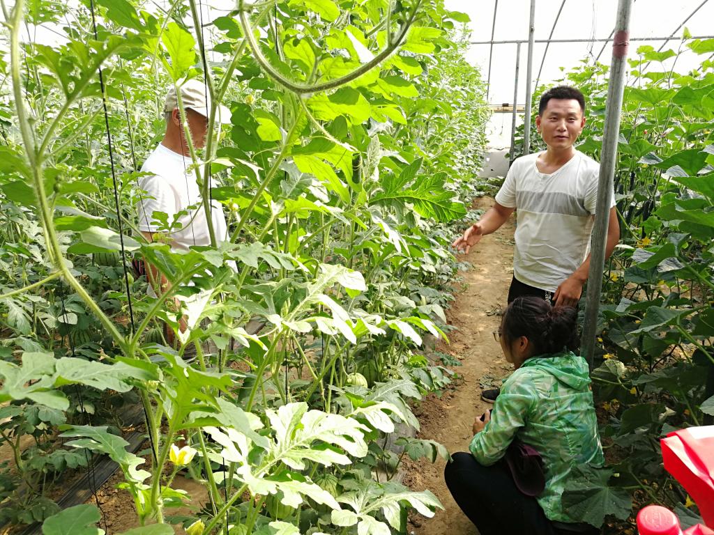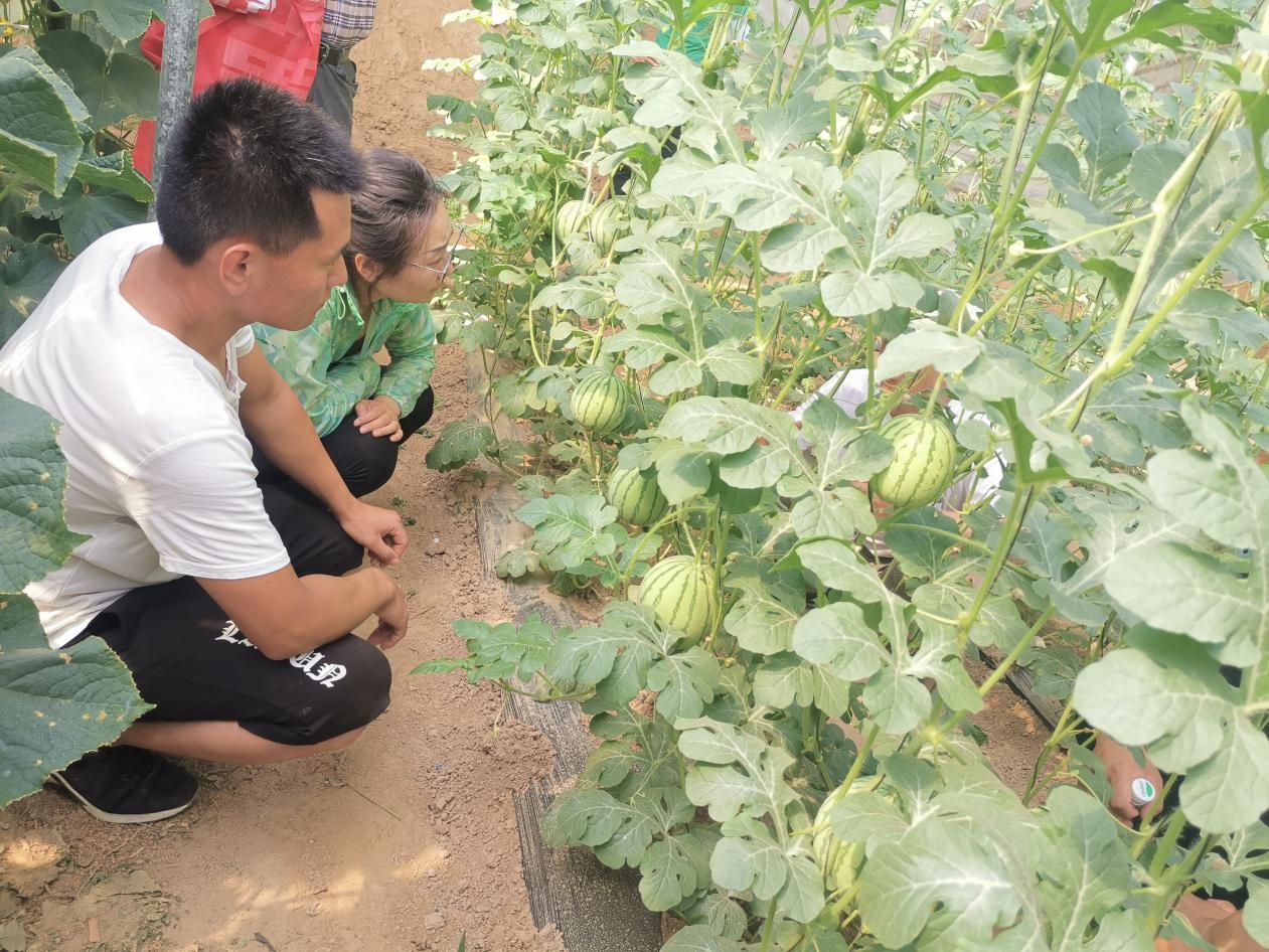 冒着烈日,专家团队先后抵达开封市祥符区兴隆乡和袁坊乡,分别对新型农业经营主体带头人培训班学员王彦杰和张亚洲进行走访、开展跟踪服务。在王彦杰的菊花生产基地,专家团队仔细询问了王彦杰求学创业过程,创业中遇到的困难困惑。王彦杰主动提出其基地可以为永利集团304am登录提供相关专业学生实习实践、劳动教育场所,受到了专家团队的肯定和赞赏;在袁坊乡张吴寨村张亚洲的温室大棚里,专家团队进行了考察了解,期间李国申教授、董薇副教授就西瓜的种植技术问题进行现场指导,专家团队就张亚洲有关进一步壮大生产规模、注册产品商标等问题的相关诉求给予了现场回应,所提建议和方案受到了张亚洲本人和周边群众的认可赞赏。