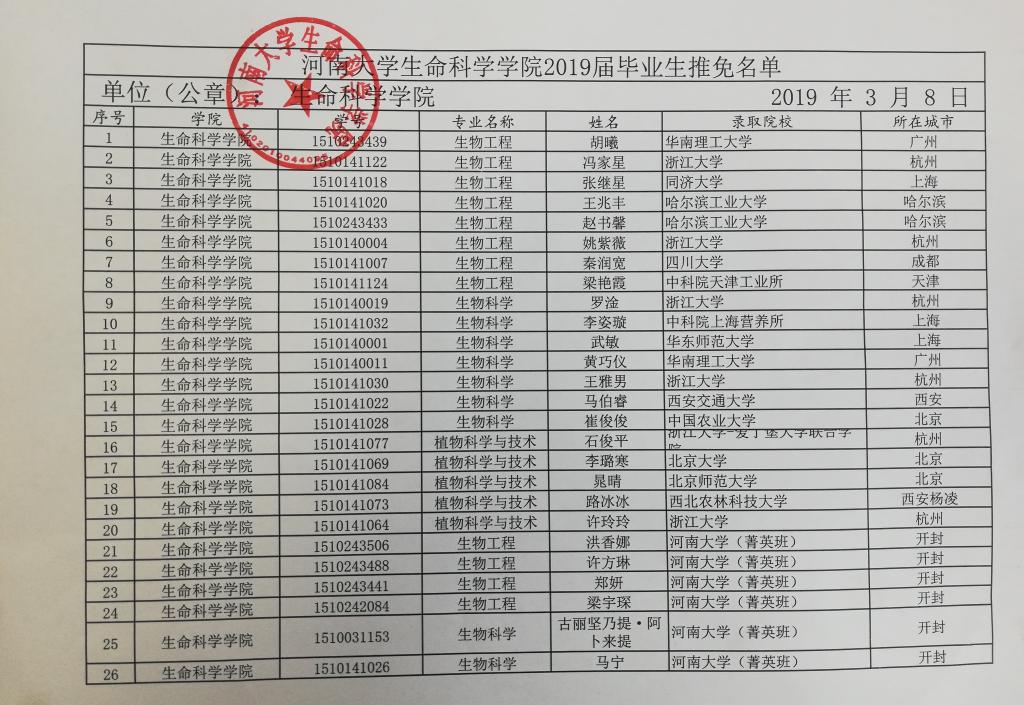 永利集团304am登录2019届毕业生推免名单