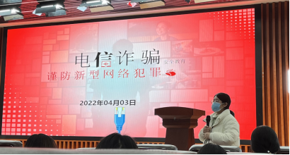 为进一步提高学生防电信诈骗意识,4月3日中午,学院2019级本科生于学院三楼报告厅举行年级大会。会议由2019级辅导员阮九霄主持,学院党委副书记程亚敏、2019级全体学生参加。