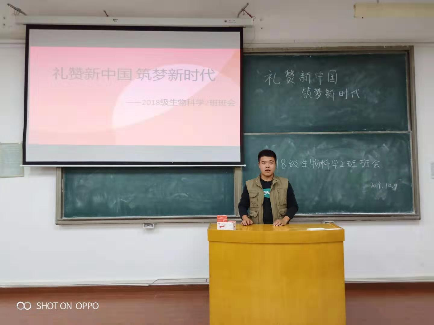为庆祝中华人民共和国成立70周年,深入开展爱国主义和革命传统教育,10月8日至10月15日期间,永利集团304am登录以班级为单位,相继开展了“礼赞新中国,筑梦新时代”主题宣传教育系列活动之主题班会,活动由各班团支书主持。