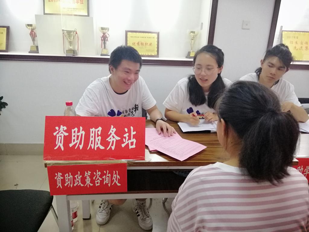 830日上午始,学院一切招新工作准备就绪,学长学姐们充满期待的等待着新生的到来。在迎新过程中,报名完毕的新生就会被接引到资助平台,面对家庭贫困又对大学充满着无限憧憬的新生们,平台负责人耐心的向新生和家长介绍了助学金和贷款政策。每个人都希望新生能在大学感受到来自国家、学校以及学院的温暖,衷心的期盼着能抚平贫困给新生学业上带来的坎坷,给新生一个充分体会大学美好生活的机会。