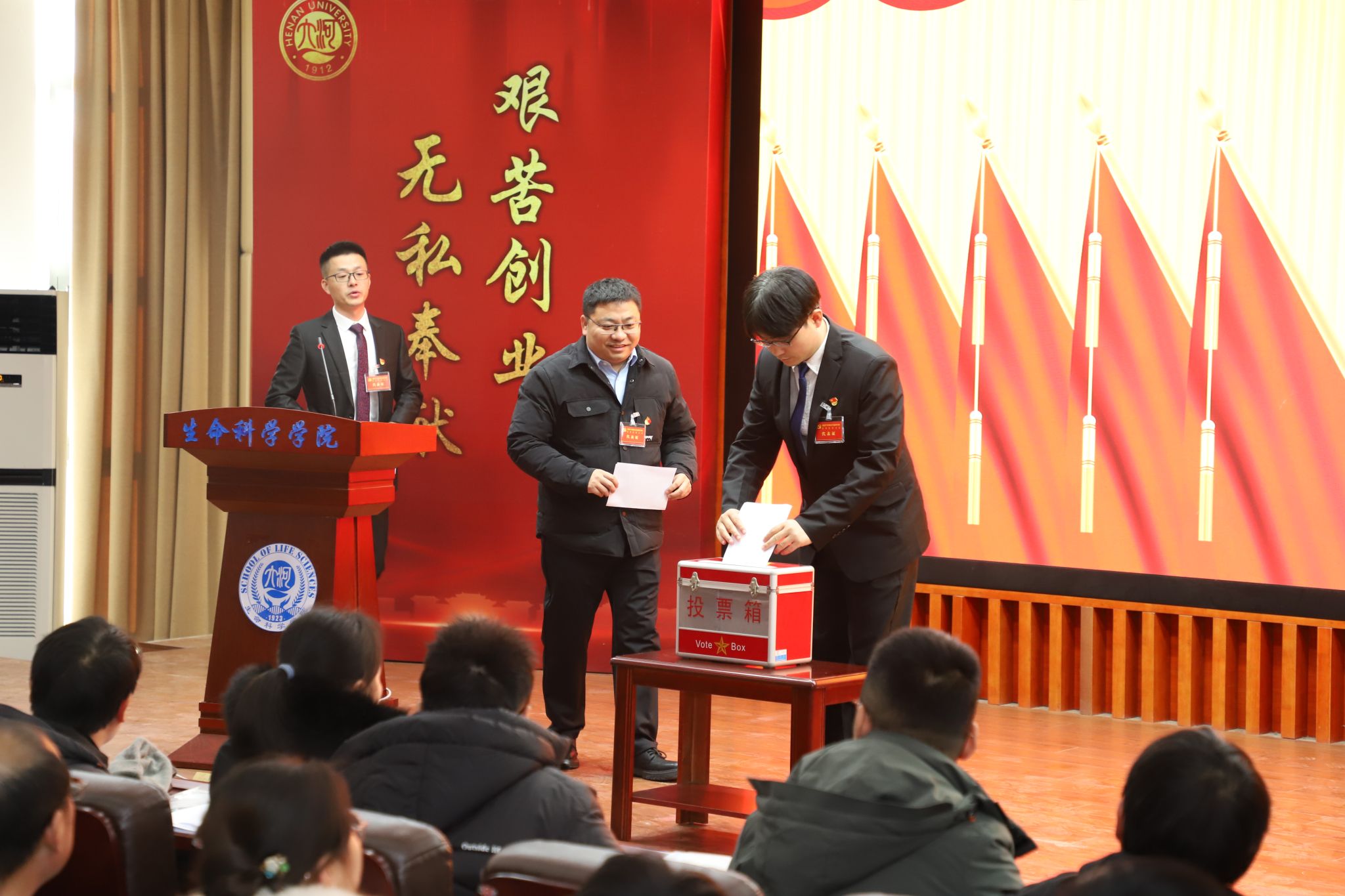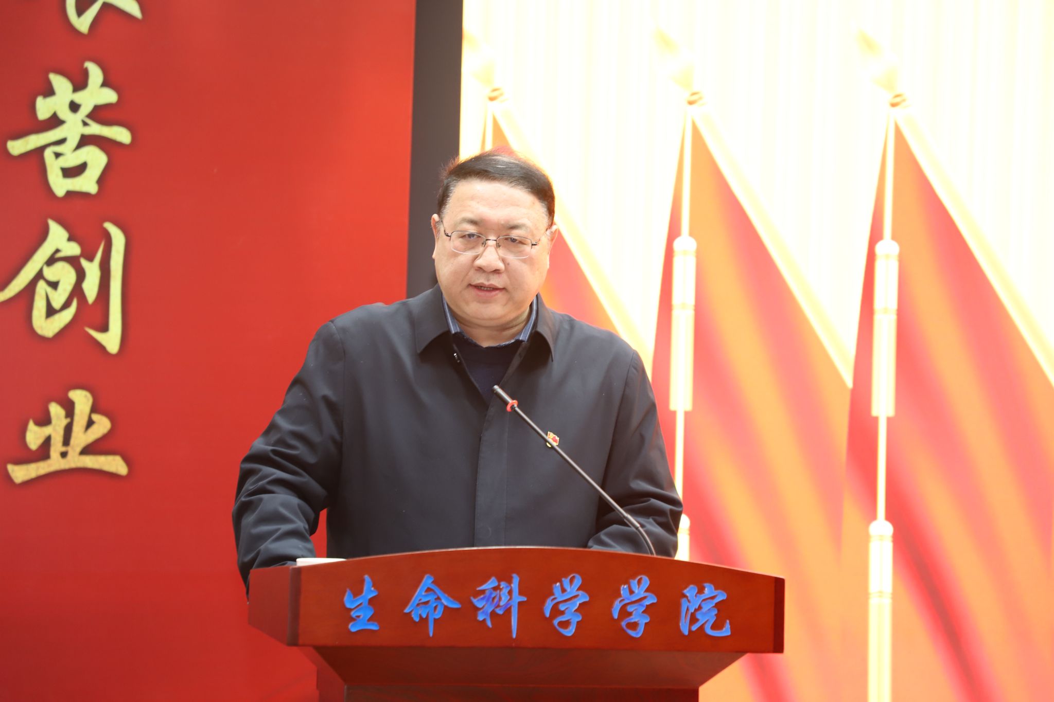 大会在庄严的国歌声中拉开序幕。学院党委书记吴建伟代表学院党委向大会作题为《自信自强 务实重干 为建设世界一流生物学学科而努力奋斗》的工作报告。
