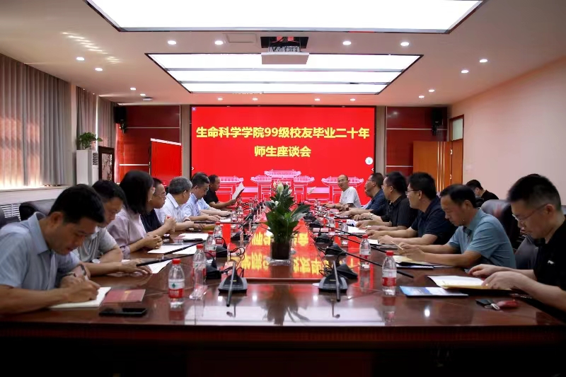 与会师生共同观看校情片《大学之道》。王刚代表学院对99级校友重返母校表示欢迎,详细介绍了生物学科的发展历程,特别是入选国家一流学科建设行列后,学院在党建引领、科学研究、平台建设、人才培养、社会服务等方面完成了跨越式发展、取得了令人振奋的成绩,希望校友们常回母校研讨交流、共谋发展。