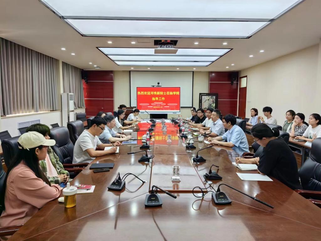 吴建伟代表学院对邓院士来院指导工作表示热烈欢迎,并对邓院士多年来对学院工作的支持表示感谢,从学院概况、重点学科、平台建设及科技合作、人才培养等方面介绍了学院的基本情况;王子成对菊花课题组目前的研究重点和未来发展等情况做了汇报。