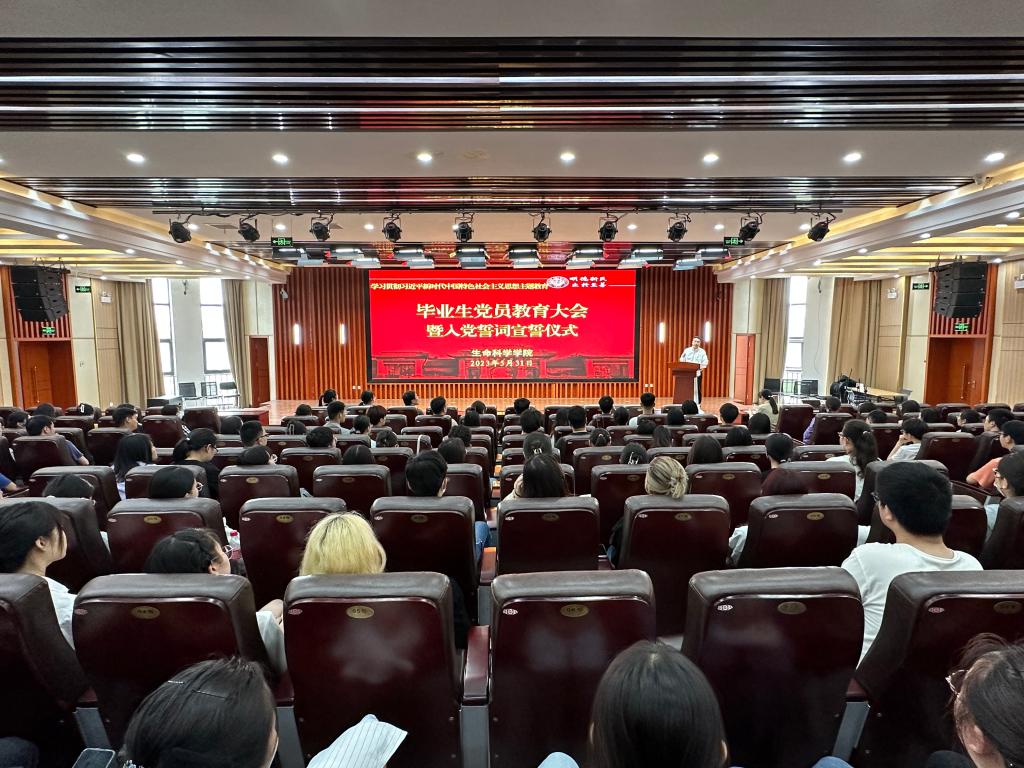 为深入学习贯彻习近平新时代中国特色社会主义思想,进一步提高毕业生党员党性修养,增强新发展党员的党员意识,5月31日下午,永利集团304am登录在学院圆楼报告厅举行毕业生党员主题教育大会暨入党誓词宣誓仪式。永利集团304am登录、棉花生物育种与综合利用全国重点实验室和省部共建作物逆境适应与改良国家重点实验室2023届全体毕业生党员及2023年上半年新发展的预备党员等160余人参加活动,教工党支部书记和学生党支部书记出席教育大会。仪式由学院党委副书记程亚敏主持。