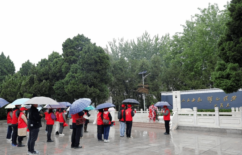 同学们首先冒雨来到位于裕禄大道88号的焦裕禄纪念园。在陵园内,大家在纪念碑的文字记录中重温焦裕禄带领群众治理黄河、除三害、脱贫攻坚的壮丽场景,感悟中国共产党领导人民弘扬“三股劲”精神。在焦裕禄同志陵墓钱,支部书记吴海刚老师带领全体党员员重温入党誓词,同学们高举右手,庄严宣誓,铿锵有力的誓言在上空久久回荡。参观过程中,吴海刚老师指出,每位同学应深刻理解“焦裕禄精神”的时代价值和现实意义,大力弘扬焦裕禄同志的奋斗精神、求实奉献精神,立足本职,落实在工作与学习当中。