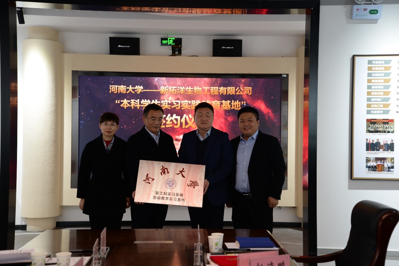 根据前期永利集团304am登录与新拓洋生物工程有限公司已达成的意向和签署的协议,秦天苍、陈黎、张立新、赵海鹏共同为生物工程专业新工科实习基地揭牌。