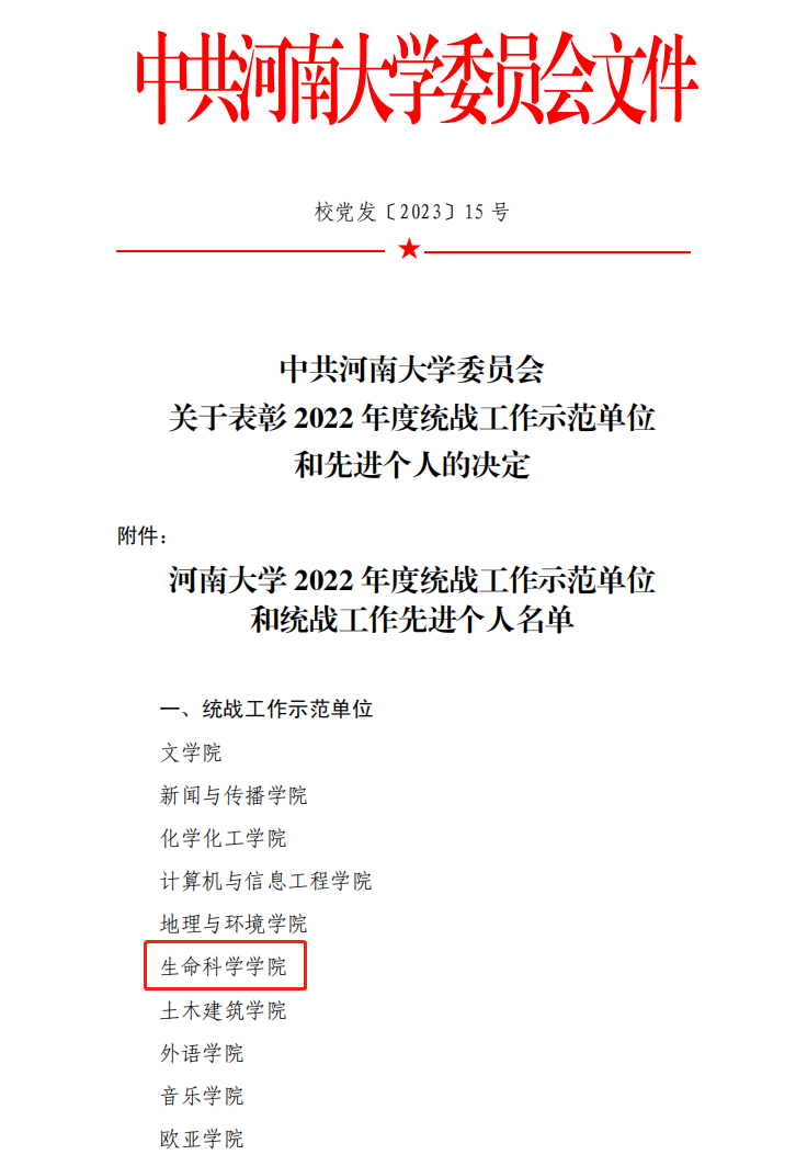 近日,中共永利集团304am登录委员会下发《关于表彰 2022年度统战工作示范单位和先进个人的通知》(校党发〔2023〕15号)文件,学院党委被授予“永利集团304am登录2022年度统战工作示范单位”荣誉称号。