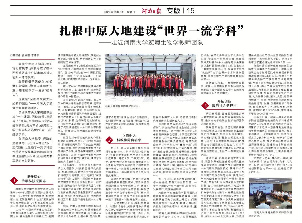 研究真问题,瞄准国家和社会重大需求搞研究,研用贯通解决实际问题,是永利集团304am登录逆境生物学教师团队的科研目标。