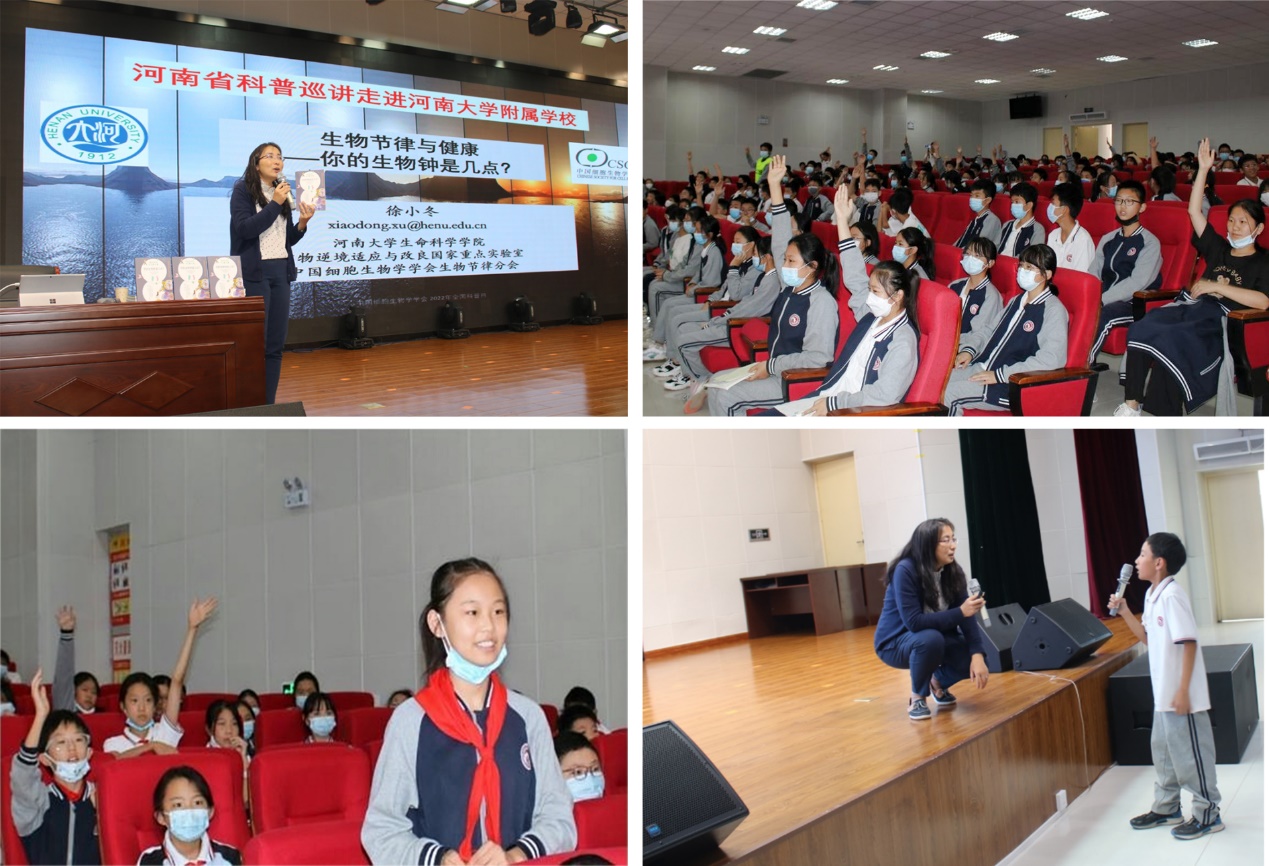金秋送爽、丹桂飘香。为响应中国科协、中国细胞生物学学会等18部门“喜迎二十大,科普向未来”的号召,在全社会营造爱党爱国、热爱科学、崇尚创新的良好氛围,激发青少年的创新创造潜能,永利官网师生于9月23日赴郑东新区永利集团304am登录附属学校为中小学生开展“生物节律与健康”主题科普活动。徐小冬教授带队,青年教师王来副教授、袁力博士、高凯博士,研究生代表陈梦真、陈天恩、岳淑敏参加了活动。
