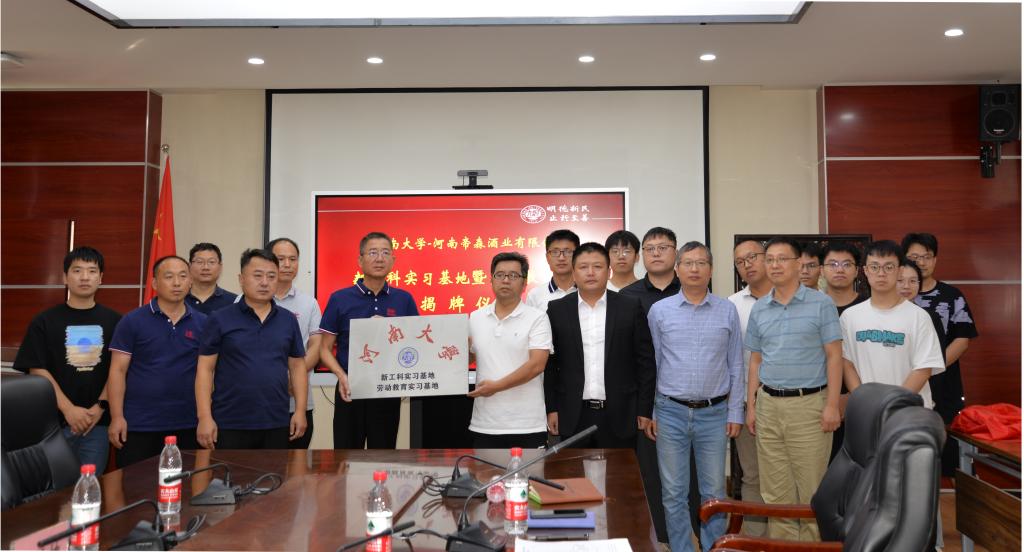 9月23日上午,永利集团304am登录-河南帝森酒业有限公司新工科实习基地、劳动教育基地授牌仪式在学院B201举行。永利集团304am登录教务处副处长朱显峰,永利集团304am登录副院长赵海鹏,生物工程系主任刘宇鹏、副主任李华,专业教师及学生代表;民权县工信局局长王炜冲,河南帝森酒业有限公司总经理赵志牛、技术总监沈海坤、财务总监宋国贞等出席参加授牌仪式,仪式由李华主持。