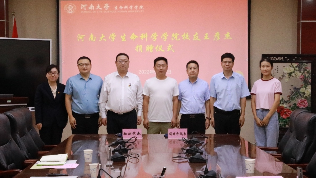捐赠仪式结束后,王彦杰与母校领导老师合影留念。