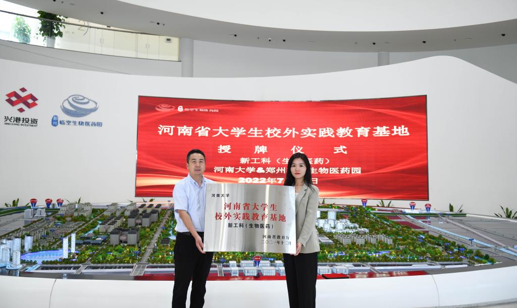 学院一行实地参观郑州临空生物医药产业园,现场为入驻企业推介参与交流的毕业生就业。吴建伟、马兵共同为永利集团304am登录/郑州临空生物医药产业园“河南省新工科(生物医药)大学生校外实践教育基地”揭牌。