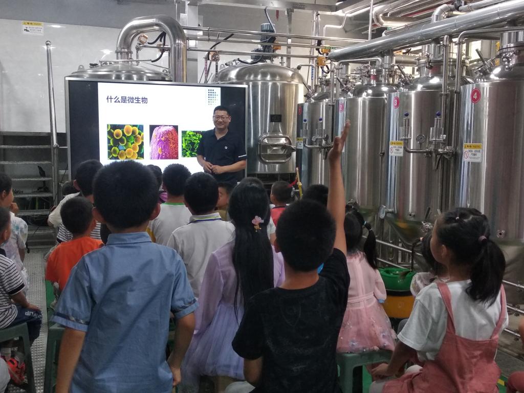 永利集团304am登录副院长赵海鹏带领小朋友们到学院一楼标本馆进行参观,为小朋友们讲解了部分植物和动物标本。参观过程中,标本馆中栩栩如生的动植物标本很快吸引了小朋友的目光,他们仔细地观察着标本,兴趣盎然、认真思考、互相讨论,不停地向赵老师询问着各种问题。学院生物工程系副主任李华带领小朋友们参观了学院的啤酒酿造车间,并为他们讲解了微生物的种类、何为微生物以及酿造啤酒的原料、过程等。小朋友们对啤酒酿造设备十分好奇,都想要知道设备罐里到底装的是什么,纷纷上前一探究竟。