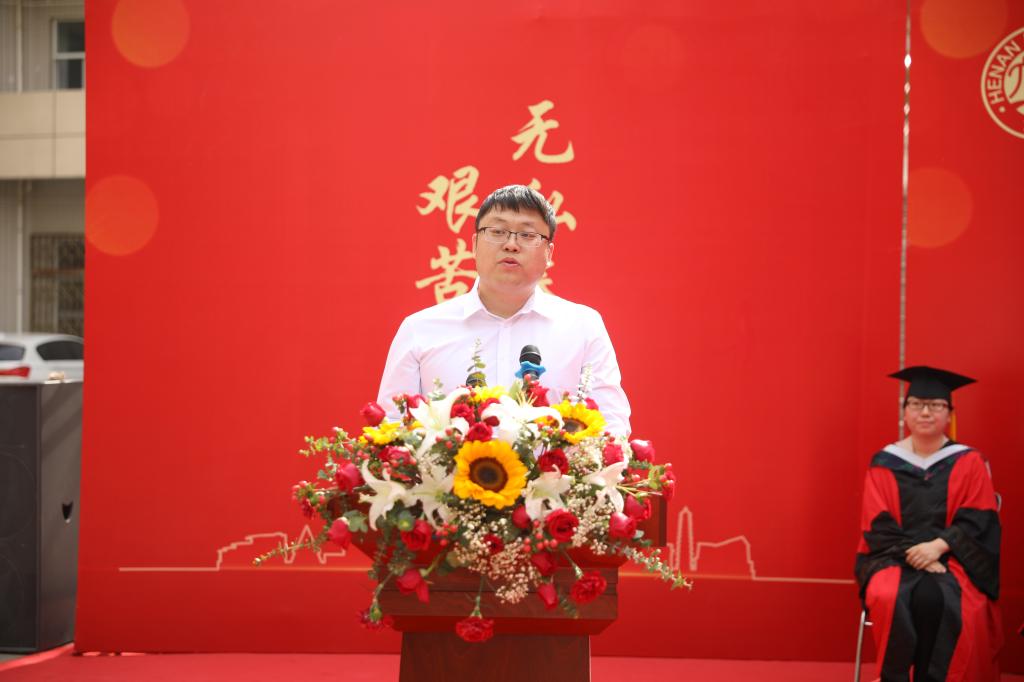 毕业是学生亲手酿的老酒,将甜美与苦涩定格在了青春最美的时刻,浅尝回忆,满是不舍。毕业生代表2018级生物工程专业李印深情回顾了四年的大学时光,青春的脚步留在校园的小路上,笑语欢歌珍藏在生科的晨昏中,衷心地感谢老师们的悉心培育。他表示,作为“双一流”建设高校毕业生和新时代青年,要主动承担历史使命和时代责任,牢记和弘扬百折不挠、自强不息;无私奉献、艰苦创业的新时期河大精神。“我们要牢记习近平总书记嘱托,做坚定的理想追求者、增强本领的奋进者、躬身实践的行动者和勇于担当的搏击者。”