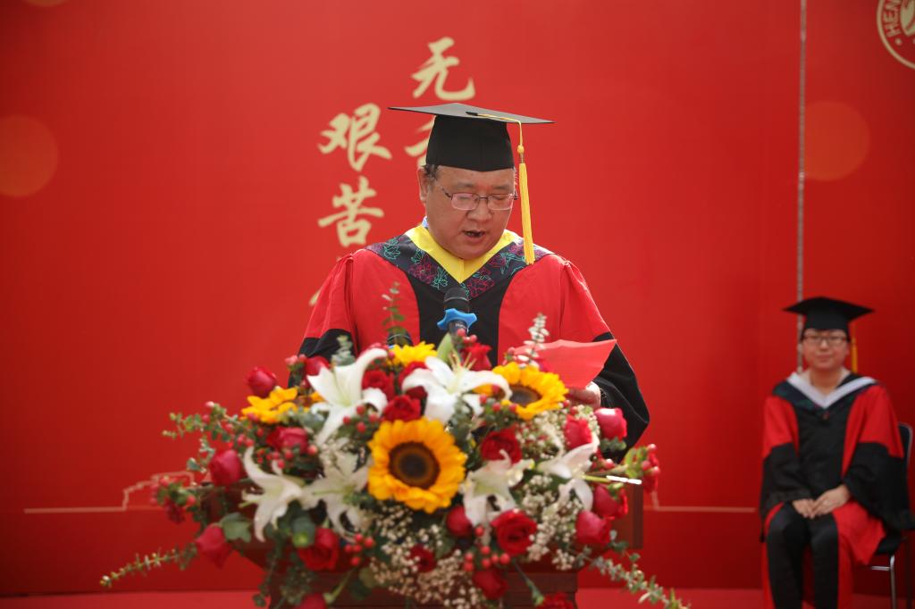 此去须怀报国志,不忘春风化雨情。学院党委书记吴建伟代表全院师生员工,向顺利毕业即将踏上人生新征程的毕业生们表示祝贺,并向悉心培养同学们的老师和家长表示感谢。离别之际,吴建伟深情寄语毕业生:把奋斗当幸福。习近平总书记指出,只有奋斗的人生才称得上幸福的人生。被称为“史上最牛创业团队”的中国共产党,无私奉献,艰苦创业30年进入“双一流”的生物学科以及入选教育部第二批“全国高校黄大年式教师团队”的逆境生物学教师团队,艰难困苦,玉汝于成,都是不懈奋斗得来的。把认真当习惯。科技人员通过手摇计算机完成我国第一颗原子弹的理论设计,宋纯鹏教授团队获得国家自然科学奖二等奖,王学路教授团队和张立新教授团队分别在顶尖学术期刊Science和Cell上发表的国际领先科研成果,靠的都是“认真认真再认真”的科学精神,要牢记“学无止境、境如生命”的生科精神,把严谨细致、一丝不苟的认真习惯养在平时。把善良当底色。“明德新民,止于至善”的校训是个人修身与社会责任合二为一所达到最完美的境界、最崇高的目标,生命科学本身也蕴含了善和爱,生命中有了善良,人生才能经常充满喜悦;生命中有了善良,人生才能幸福常在。他祝愿每位毕业生都能尊严地生活,有梦想、有情怀;都能诗意地生活,爱家庭、重情义;都能体面地生活,有健康、有财富。永利集团304am登录永远是同学们的心灵的家园和精神的港湾,希望毕业生们带着生科的爱和对生科的爱远行,常回家看看。