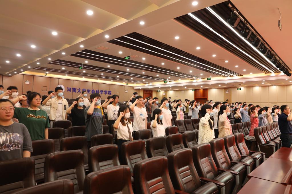 毕业生党员代表、2019级生物学专业硕士研究生冯晓培庄严承诺:将牢记党员身份,不负河大期望、不负生科培养,勇担历史使命,坚定前进信心,立大志、明大德、成大才、担大任,努力成为堪当民族复兴重任的时代新人。