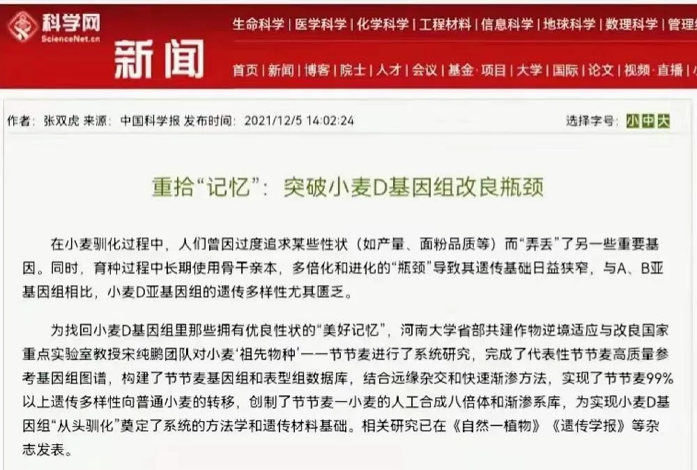 近日,永利集团304am登录省部共建作物逆境适应与改良国家重点实验室教授宋纯鹏团队在小麦“祖先物种”——节节麦研究上的重要研究成果被《中国科学报》报道。以下为报道截图~