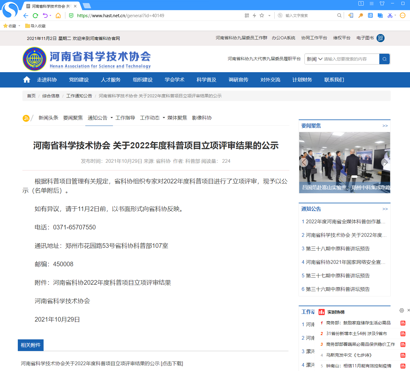 10月29日,河南省科学技术协会公示了2022年度科普项目立项评审结果,永利集团304am登录赵海鹏主持的《线上线下结合 创新科普范式-开封黄河鸟类科普》项目成功入选。