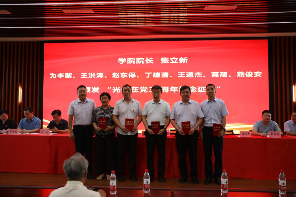 学院党委书记赵东保讲话,他代表学院党委向全院辛勤工作在各个岗位上的共产党员、党务工作者以及全体师生和员工,致以亲切的问候和美好的祝愿。在讲话中,赵东保回顾了我们党百年来的峥嵘历史和伟大贡献。他指出,我们正站在“百年华诞”与“新的一百年”的历史交汇点上,身后是波澜壮阔的历史,面前是喷薄而出的曙光,要结合党史学习教育,保持对学院“争一流、创一流、建一流”发展目标的清醒认识和执着追求,坚持进一步强化党史学习教育宣传引导,继续推进“对标争先”活动的开展,继续加强党的建设,以党建高质量引领事业发展高质量。
