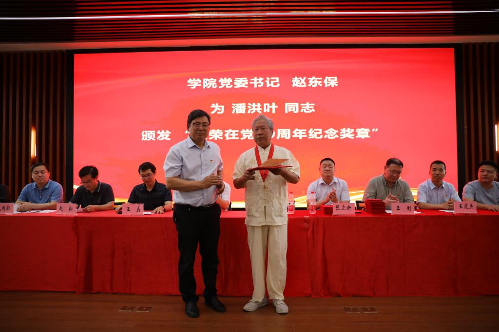 伴随着颁奖音乐,气氛庄重热烈。学院党委书记赵东保为潘洪叶同志颁发“光荣在党50年纪念奖章”,院长张立新为李黎等7名同志颁发“光荣在党30年纪念证书”,学院执行院长王刚、棉花生物学国家重点实验室主任周树堂为谷艳芳等22名教师颁发“工作30年纪念证书”,学院党委委员、班子成员为先进基层党组织、优秀共产党员、优秀党务工作者颁发获奖证书。