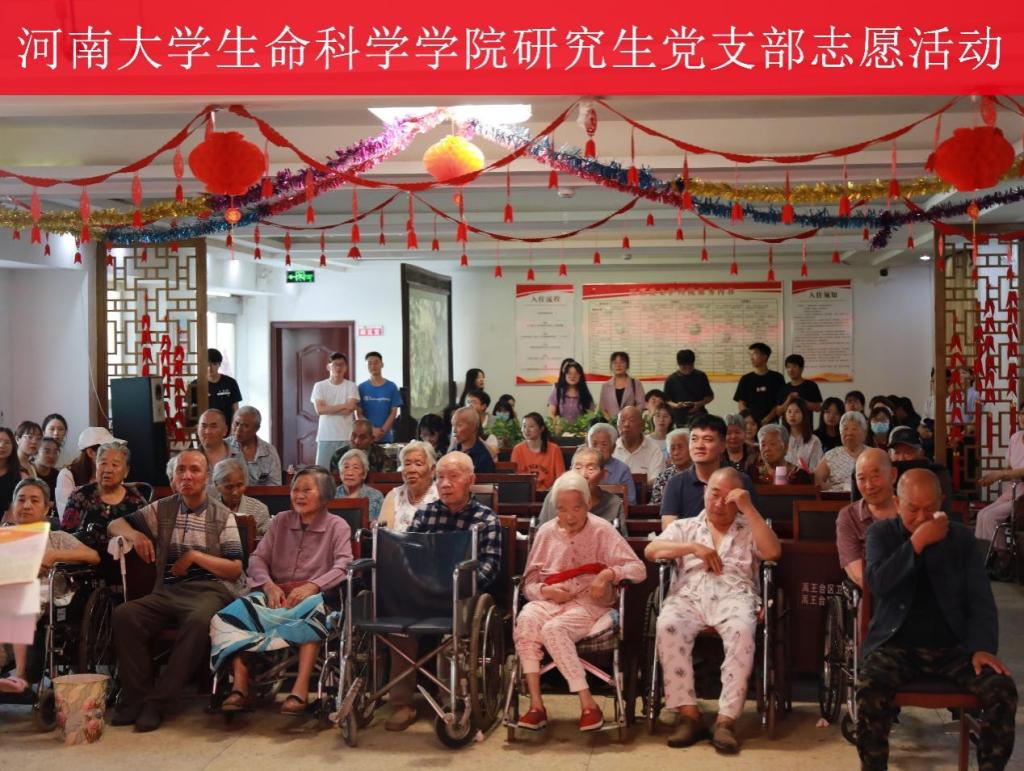 2021年6月21日下午,永利集团304am登录研究生第二党支部、第三党支部书记苗原、蔺玲玲,带领党员、积极分子共58人来到开封市五福爱心护理院,开展敬老爱老志愿活动,旨在向护理院的孤寡老人献出志愿者们的热情和祝福,在夏日炎炎的夏天为他们送去一份关爱与欢乐。