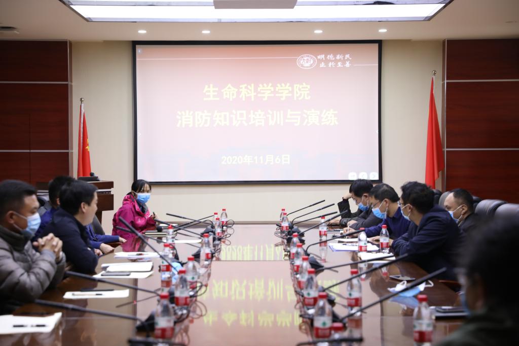 为进一步增强永利官网师生的消防安全意识,提高师生应对火灾事故的应急处置能力,11月6日下午,永利集团304am登录在B201会议室举行消防知识培训,并举行了消防演练。开封市消防支队防火监督科科长张四海,永利集团304am登录保卫处消防科科长马建军、陈兴富及生命科学主要领导、各实验室负责人、安全员、本科生、研究生参加活动。会议由学院副院长臧国轻主持。