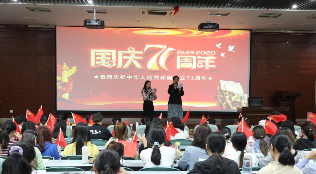 活动开始,全体师生激情澎湃地合唱了《我和我的祖国》。大家共同挥舞着国旗,齐声高歌,诉说着对祖国的热爱。“我和我的祖国,一刻也不能分割……”高昂的歌声回荡在报告厅的每一个角落。