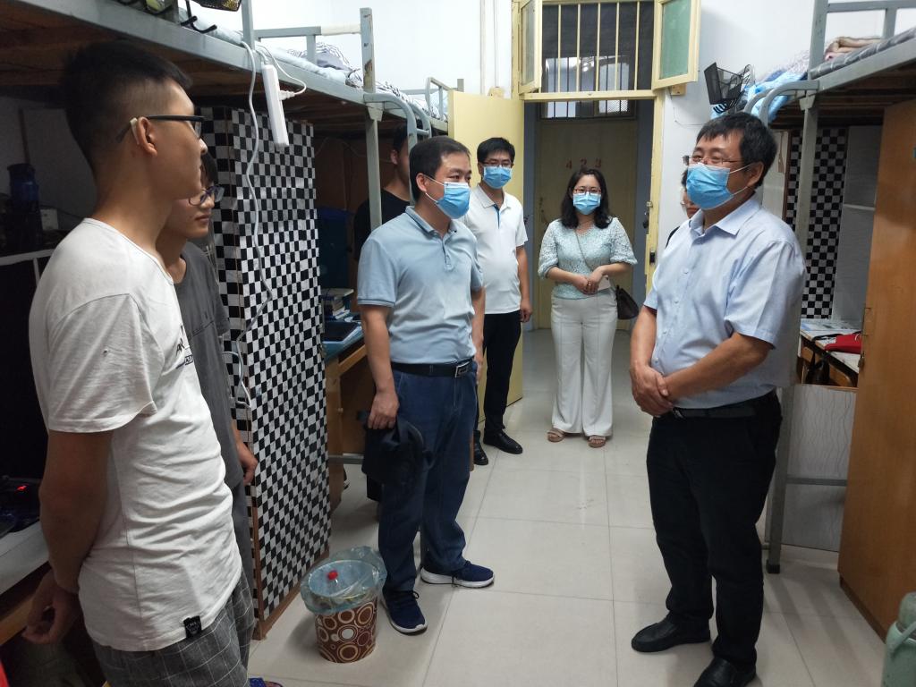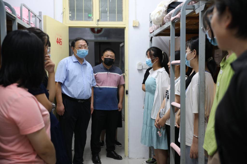 为进一步了解2020级本科新生的住宿情况,帮助新生尽快适应新的生活环境,9月12日晚7点,永利集团304am登录党委书记赵东保,常务副院长、党委副书记王刚,党委副书记张亚歌,副院长臧国轻,副院长赵海鹏及各年级辅导员老师前往东苑学生公寓看望刚刚入学的2020级新同学。