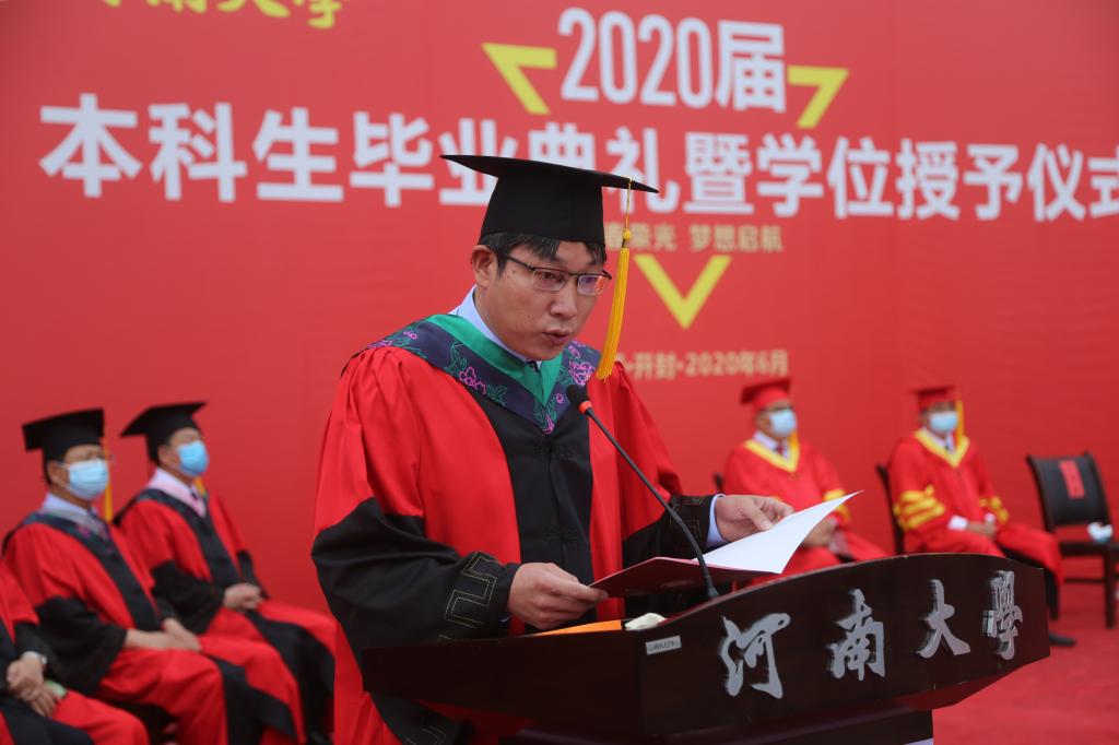 校党委副书记张宝明宣读《关于表彰2020年河南省优秀应届大中专毕业生的决定》和《永利集团304am登录关于表彰2020年优秀应届毕业生的决定》。