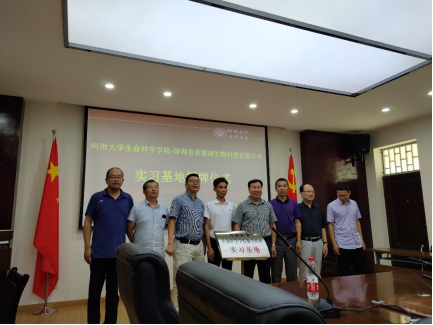 7月11日下午,永利集团304am登录-深圳市美德瑞生物科技有限公司教学科研实习基地授牌仪式在学院B201举行。永利集团304am登录常务副院长苗雨晨、副院长王道杰、深圳市美德瑞生物科技有限公司总经理刘俊凯、生物工程系主任杨生玉等专业教师出席授牌仪式。