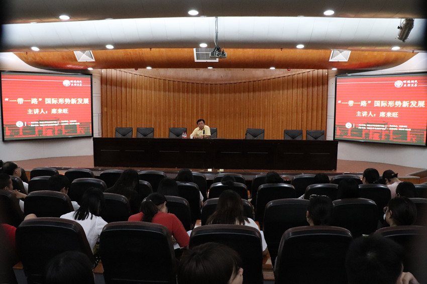席来旺与师生分享了他与母校之间的深厚感情,就“‘一带一路’国际新形势”下国家发展、生命科学的机遇和个人前途的发展做了分析。他认为,一个国家的发展必须依托于良好的国际形势,必须制定可行的国际战略,与国际社会精准对接。一个企业的发展也不例外,就此他还以当下热门的“华为被美国打压”事件为例,认为该事件只是中美贸易战的一个外在形式。而今年恰巧是中美建交40周年,中美关系将面临新的考验。在推进“一带一路”建设过程中,考验与收获并存,他告诫同学们应树立忧患意识,以实实在在的学习、工作,推进“一带一路”建设稳步向前,为中华民族的伟大复兴做出自己应有的贡献。精彩的报告赢得了现场师生的阵阵热烈掌声。