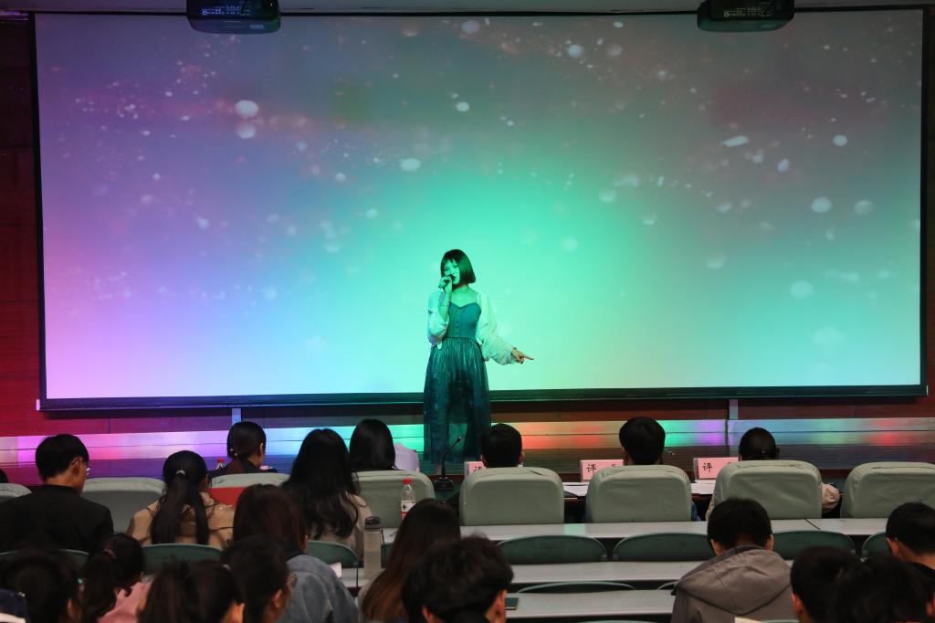 经过初赛和半决赛的精彩角逐,共有八名选手脱颖而出,进入决赛。本次决赛分为命题演讲和评委提问两个环节。命题演讲的题目为“the change”,参赛选手准备充分,信心十足,用流利的英语口语和精美的PPT阐述了自己眼中的“the change”,为场下师生带来了一场英语视听盛宴。在比赛的间隙,邓欣雨等同学带来了英文版的《出师表》,铿锵有力的语言,让人身临其境,展现了时代的变化,与决赛主题联系在一起;刘学颖同学演唱了动听的英文歌曲《better than revenge》,优美、动听的旋律,将现场的氛围推向高潮。经过一个半小时的激烈角逐,最终沈泽纯同学摘得桂冠。