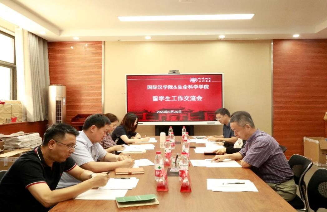 9月20日下午,国际汉学院与永利集团304am登录留学生工作交流会在生科院党建活动室A111召开。国际汉学院副院长翟秋敏、教务办公室主任阳捷、永利集团304am登录副院长李志芳、研究生工作与管理办公室主任张彭湃、留学生导师代表许志祥教授、魏建设教授、洪军教授和4位2023级留学生参加会议,张彭湃主持会议。