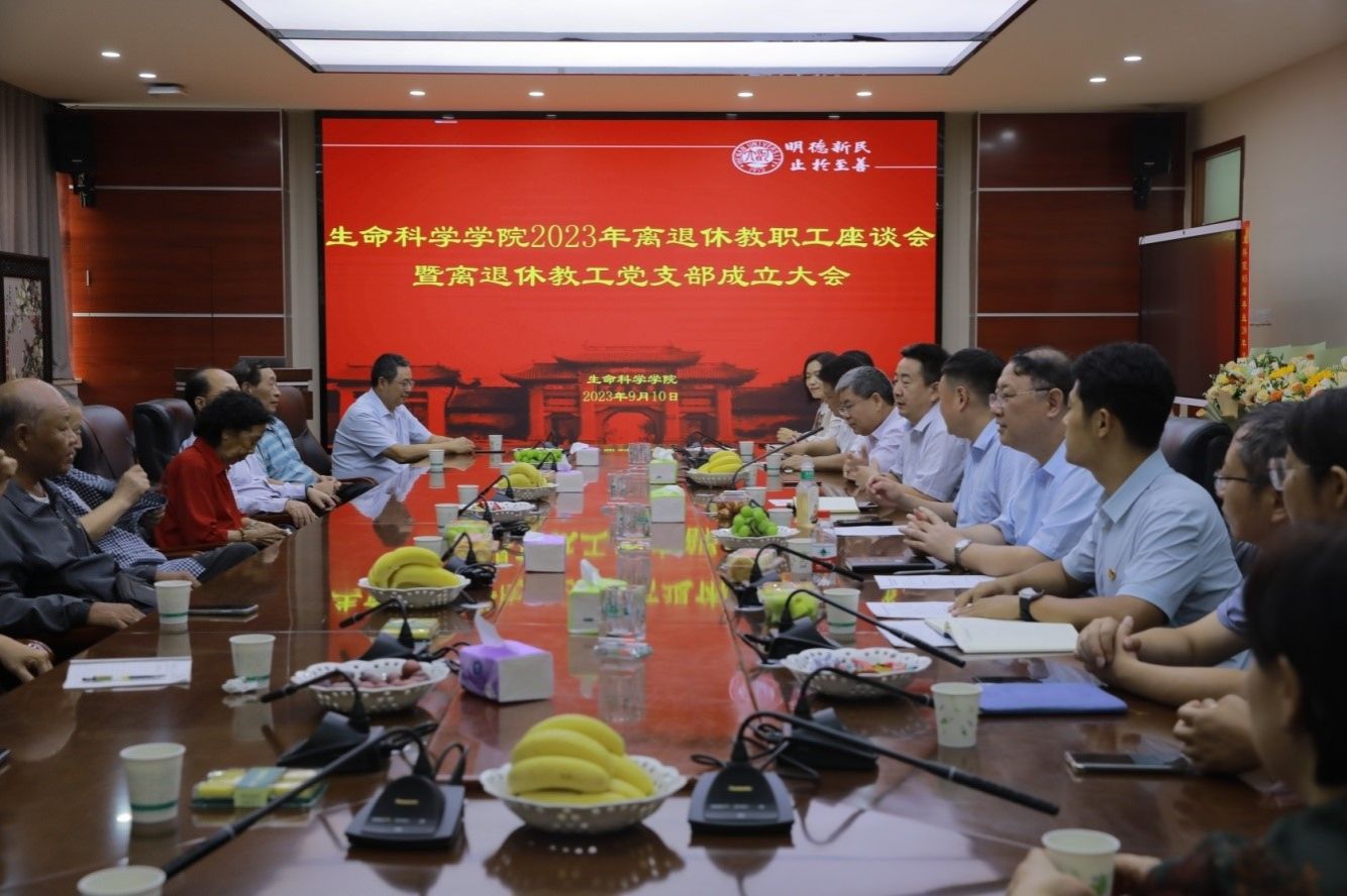 副校长、学院院长张立新代表学院向一直关注和支持学院发展的离退休教职工致以教师节的问候。他指出,学院从1987年重建以来,经过一代代生科人艰苦创业、无私奉献,2022年再次入选世界“双一流”建设学科。离退休教师把自己最好的年华奉献给了学院,每一项成绩都记录着大家的贡献和付出,希望老师们继续参与到学院的发展建设,为生物学科再起高峰建言献策。执行院长、党委副书记王刚介绍了学院的发展情况及离退休教职工情况,近年来学院在党建引领、学科建设、科学研究、教育教学、社会服务和人才培养等方面完成了跨越式发展、取得了令人振奋的成绩,离不开老师们的关注和支持,学院会持续做好离退休教职工的关怀和服务,希望大家回学院指导工作,共谋发展。
