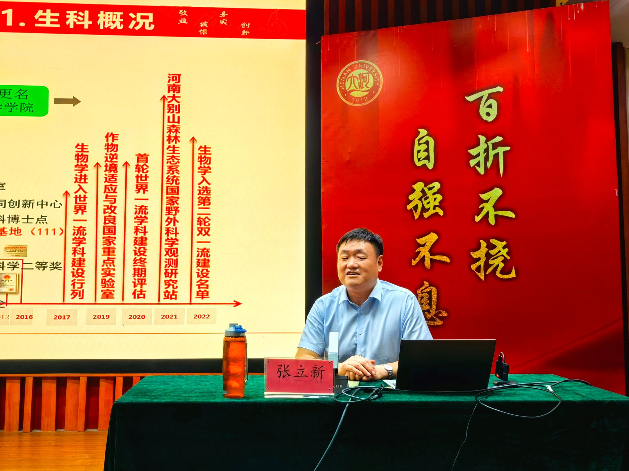 副校长、永利集团304am登录院长张立新从学院发展历史、人才培养成效、文化与精神三个方面讲授生科第一课《一流学科培育一流人才》。他指出,一代代生科人无私奉献、艰苦创业,生物学科从当初的“一个团队、两间教室、三位老师”,到现在的世界一流学科、B+学科,经历了刻骨铭心、催人奋进的发展过程,希望同学们发扬生科文化、传承生科精神,在一流的人才培养中成为创新拔尖人才。通过观看《大学之道》、《大德曰生》等具有学校精神、学科历史的影片,进一步增强了同学们爱校荣校的情怀和奋发向上的斗志。学院党办主任李靖宇围绕牢固树立理想信念为题,从新生如何提升自身素养、大学如何成就个人价值、入党的基本程序等方面为同学们进行交流,引导学生厚植家国情怀,在大学求学历程中坚定政治信仰,努力成为国家建设需要的合格建设者和接班人。