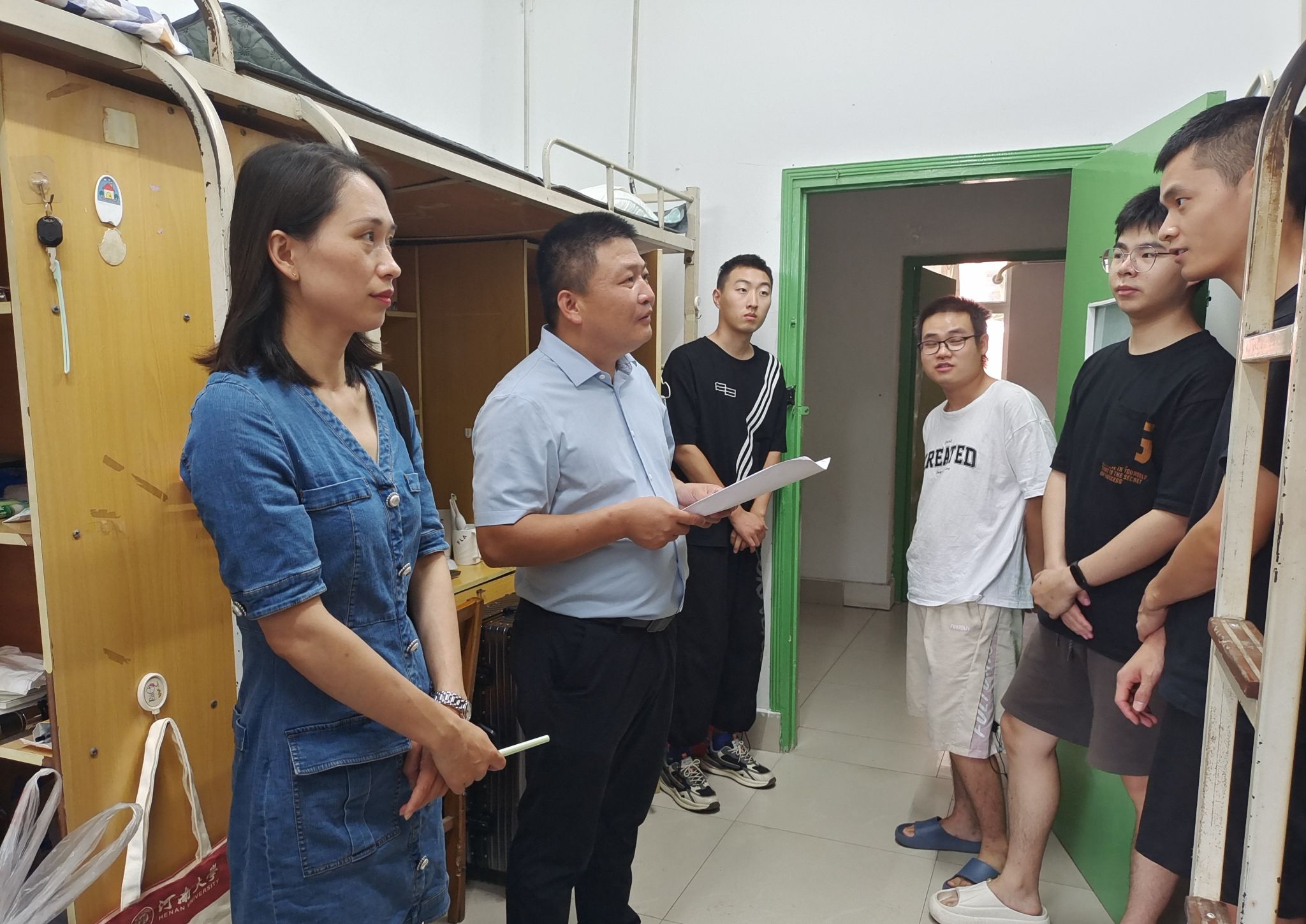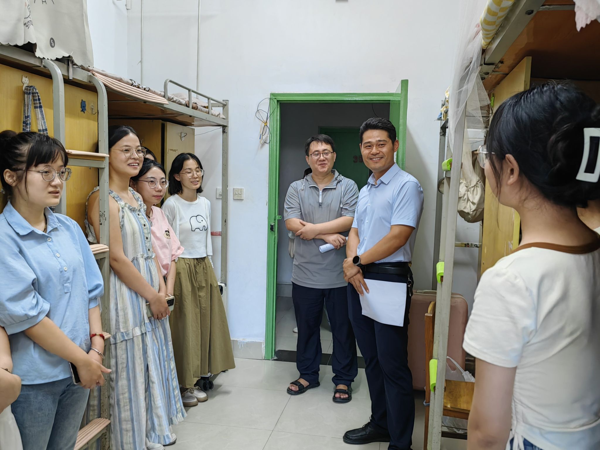 9月7日下午,学院党委书记吴建伟带领学院领导班子、学工队伍到研组团公寓看望研究生新生。在学生宿舍内,老师们对新生的各方面情况进行了详细询问,了解入学情况。“你们都是从哪里过来的?”“到校之后是否适应这里的气候环境?”“对接下来的科研生活有什么疑惑吗?”……在与新生面对面交谈中,吴建伟代表学院对新生的到来表示热烈欢迎,希望同学们尽快熟悉环境,适应即将到来的科研节奏,跟随导师学习科研技能,叮嘱同学们注意劳逸结合,加强身体锻炼,为更好的攀登科研高峰打下坚实基础。
