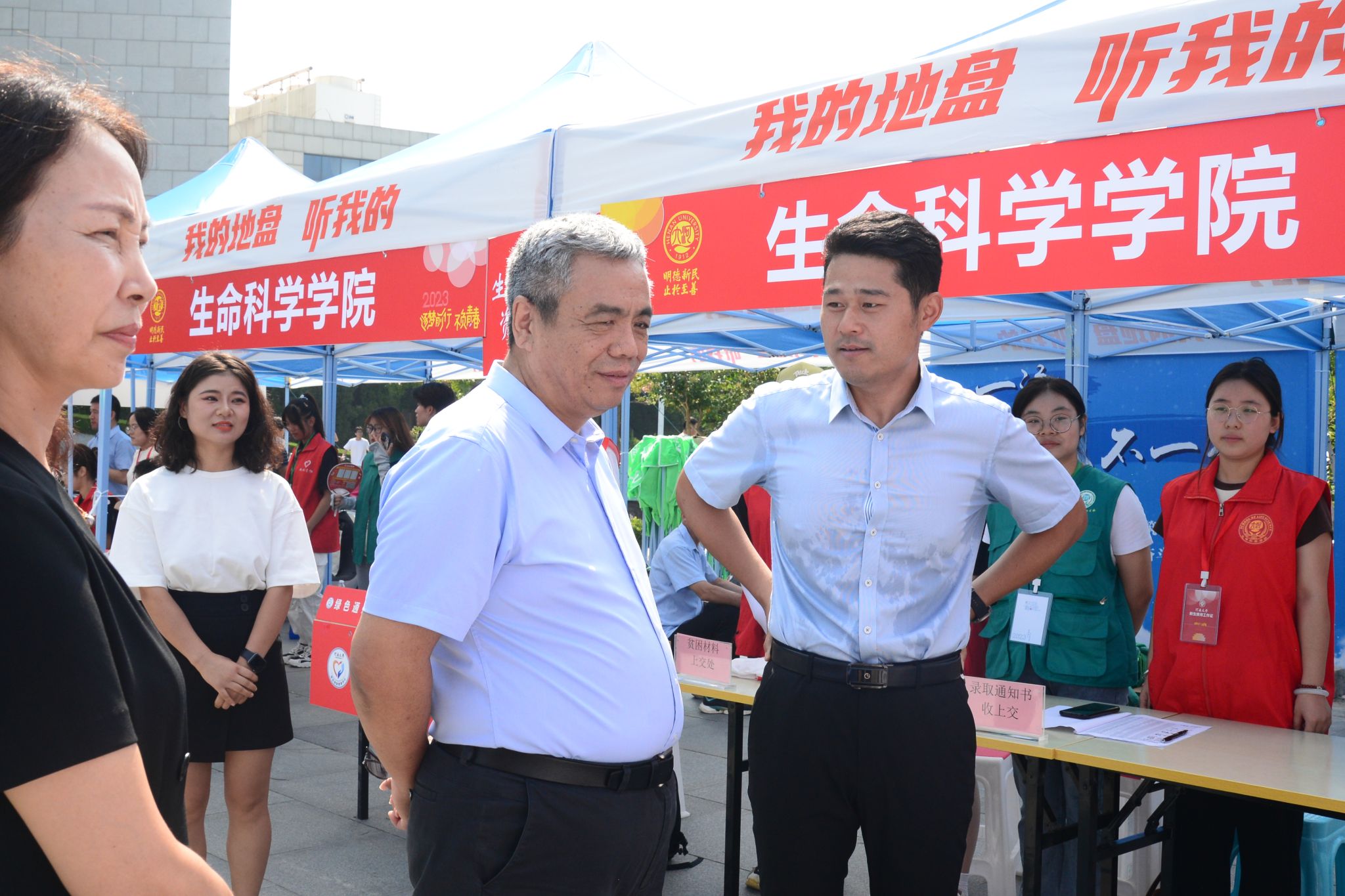 校领导卢克平、谭贞到学院迎新站点指导工作时,对学院近年来取得成绩表示肯定,并详细询问了毕业生考研情况。学院党委副书记宋永鹏介绍到,2022级学生考研率54%,报考率82%,有部分学生通过学校的项目出国深造,在学校“双一流”建设的支持下形成了完整的科研育人体系,人才培养质量显著提升。随后,宋永鹏带领全体辅导员来了解新生报到情况,亲切问候迎新志愿者,与报到新生和家长亲切交谈,针对具体问题给出解决办法,确保报到现场合理有序。徐霏雨同学的家长表示,永利集团304am登录的迎新工作周密且暖心,相信孩子们在学院“学无止境,境如生命”的院训下会取得更大的进步,希望孩子在永利集团304am登录美丽的校园学有所成,渡过一段健康快乐的大学生活。