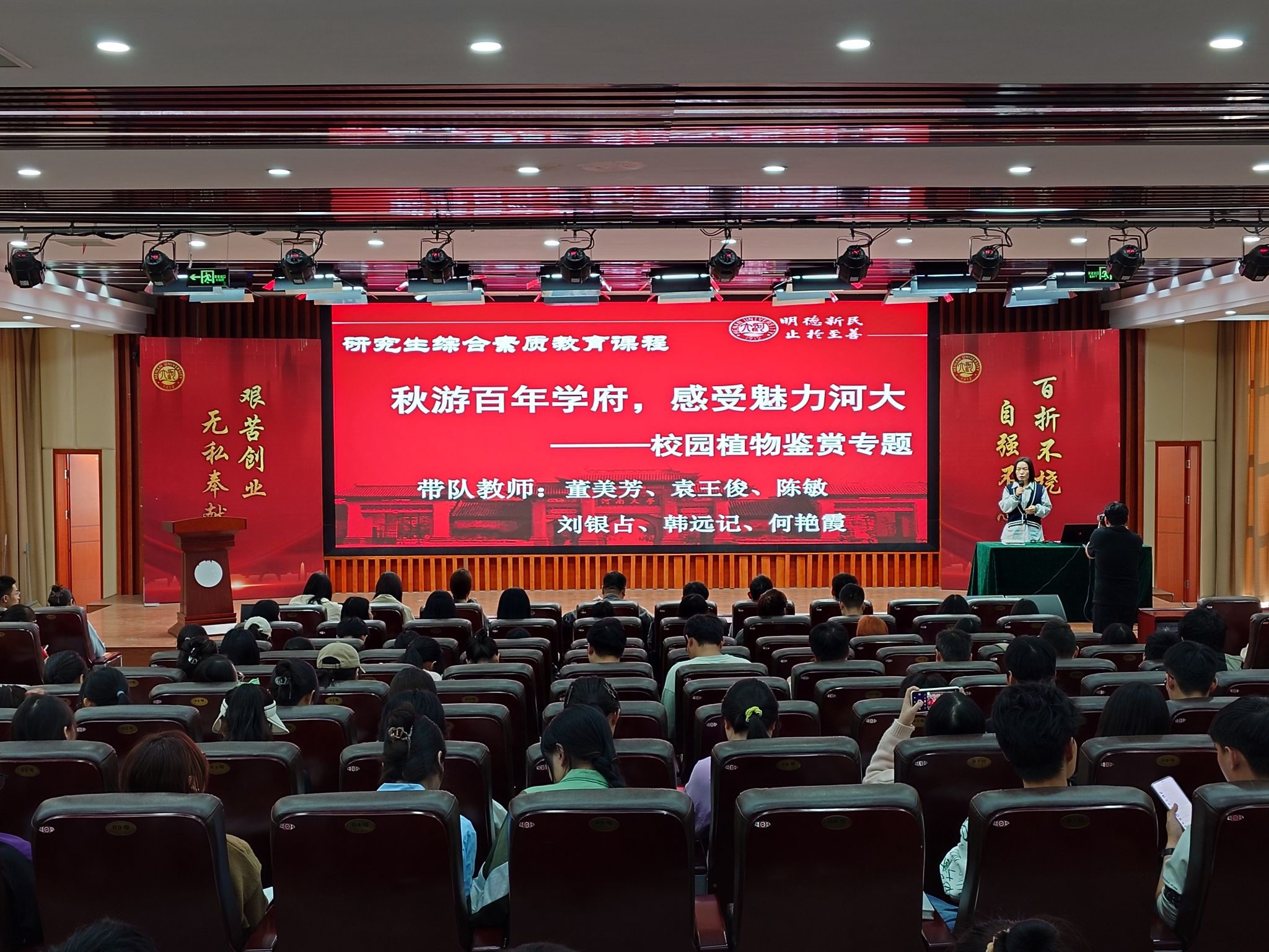 为进一步提升研究生综合素质教育课程的育人实效,10月26日,永利集团304am登录举办了校园植物鉴赏专题活动,特邀植物学教师董美芳、袁王俊、陈敏、刘银占、韩远记和何艳霞担任带队教师,学院2023级全体研究生参加了此次专题活动。