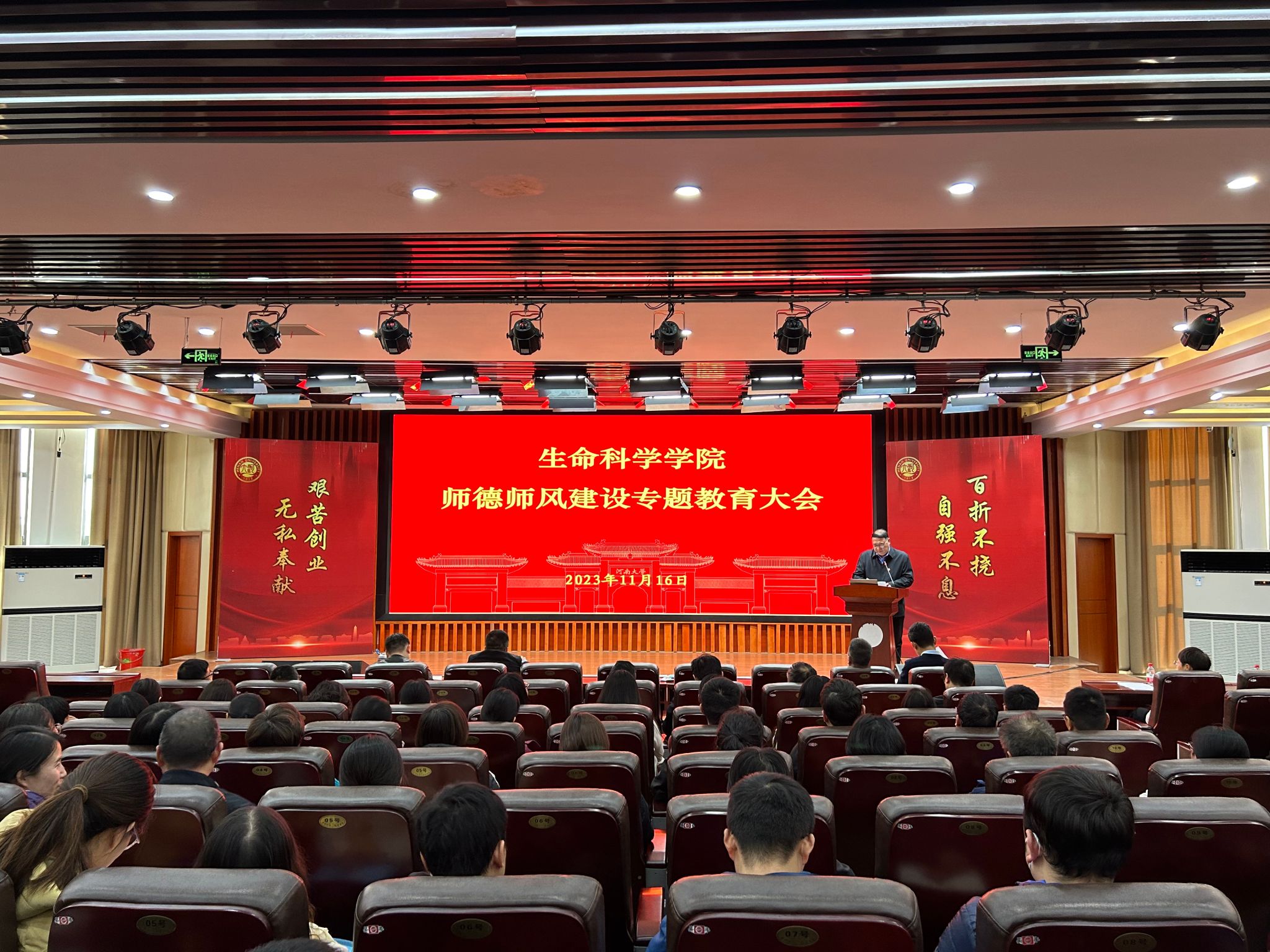 按照学校统一部署,为进一步加强学院师德师风建设,全面提高教师思想政治素质和职业道德素养,11月16日下午,永利集团304am登录在圆楼报告厅召开师德师风专题教育大会。永利集团304am登录、棉花生物育种与综合利用全国重点实验室、省部共建作物逆境适应与改良国家重点实验室全体教职工参加学习。会议由学院党委副书记宋永鹏主持。