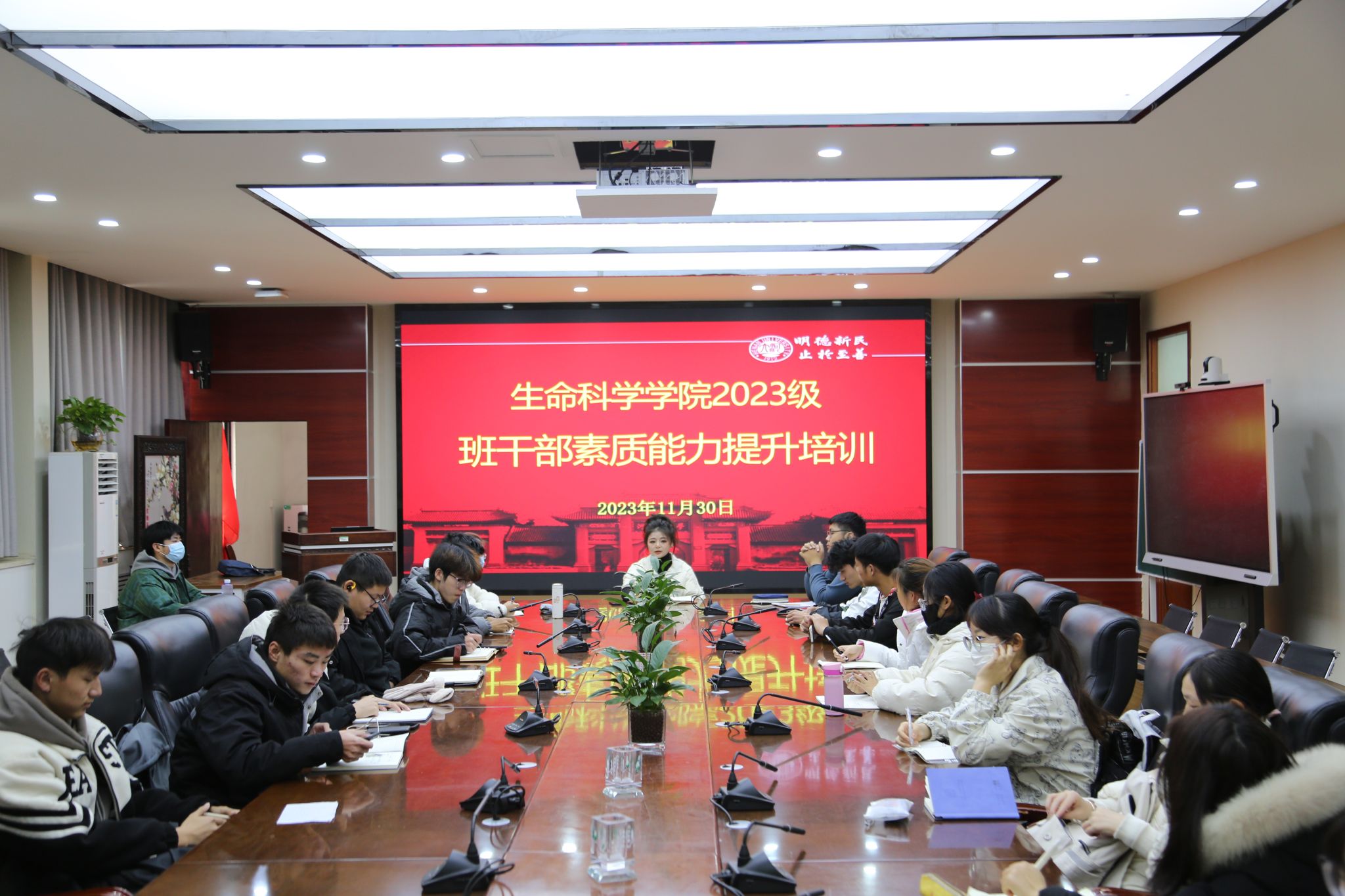 为加强学生干部队伍思想政治建设,切实提高学生干部的综合素质和服务能力,培养一支业务精、作风正、能力强的学生干部队伍,11月30日,永利集团304am登录2023级本科生学生干部综合素质能力培训会在学院B201召开,2023级辅导员杨芯及全体学生干部参加。本次培训分为专题学习、经验分享、破冰之旅三个环节。