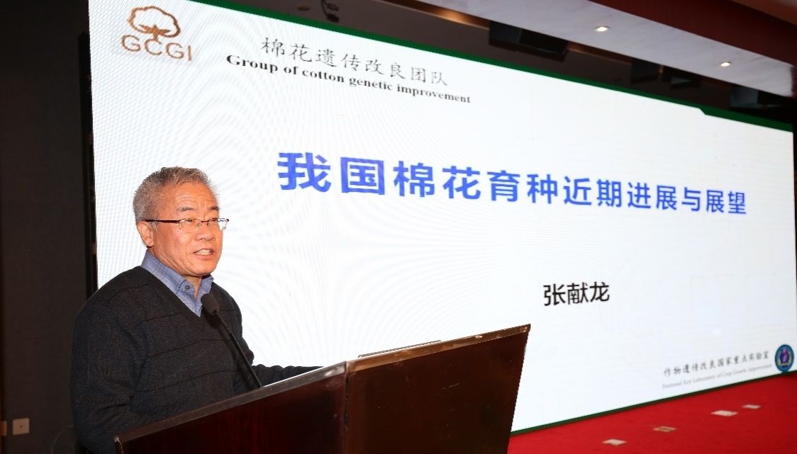 张献龙院士、李付广研究员、郭旺珍教授、张艳教授等特邀专家分别围绕棉花生物育种、棉纤维遗传改良、棉花耐逆、抗病遗传改良、棉花系统进化等领域就各自的最新成果作了精彩的学术报告。其他与会专家也围绕棉花育种、棉花耐逆、抗病应用基础研究、棉花栽培种与野生种资源研究与利用、棉花生物信息学大数据的交叉融合等多学科交叉领域重要研究方向以及棉花生物学中的关键科学问题进行了深入探讨。我校苗雨晨教授、安国勇教授、李云河教授和青年学者高巍教授、贾坤鹏教授、邹长松教授等汇报了各自研究的新进展,New Crops杂志编辑李彤博士就期刊定位及棉花生物育种专刊组织情况向与会专家进行汇报。棉花生物育种与综合利用全国重点实验室(永利集团304am登录)常务副主任安国勇教授主持闭幕式。