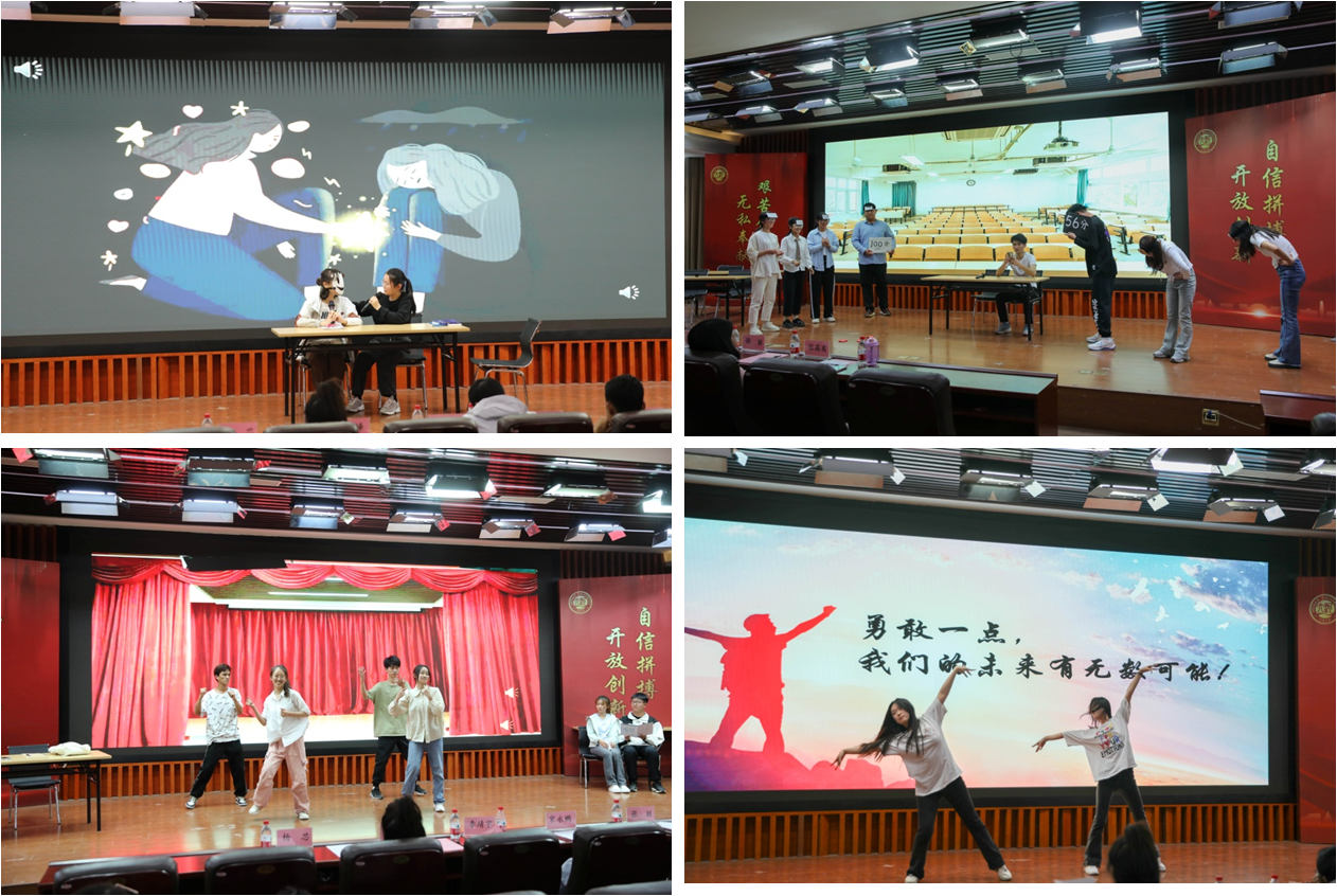 各参赛团队依托大学生生活实际,精心编排,用心表演,分别从迷茫与觉醒、矛盾与自我接纳等方面诠释当代大学生的内心世界,带来一场场走心又精彩的情景剧。《破茧》以幽默诙谐的方式讲述主人公在网络世界沉浮,在内卷中自耗,最终幡然醒悟,找到了自己的节奏,破茧成蝶。《一场跨越时空的心灵奇旅》告诉我们爱自己应当终其一生,一位大学生因儿时遭受校园欺凌、家庭生活的不幸等永远无法释怀,他逐渐正视这些不堪,最终一步一步完成对自己的救赎。作品《一路生花》展现了初入大学的女主由于经受挫折而陷入自我怀疑,通过与外公间的深入对话开启了一场时空穿越,她看到母亲勇于尝试不擅长的舞蹈,虽遇队友中途放弃,但她依旧没有放弃,充满自信,不懈努力,最终女主从母亲的成长经历中学习到她的优秀品质,进一步明确了奋斗方向,最终该剧荣获本次心理情景剧大赛第一名的好成绩。所有参赛同学们全情投入,将角色内心的情感冲突和心理协调过程展现得淋漓尽致,赢得了观众们的阵阵掌声。评委老师也对各团队的表演给予了充分肯定,强调了心理健康的重要性,希望同学们积极面对挑战和困难,努力学习,健康成长。