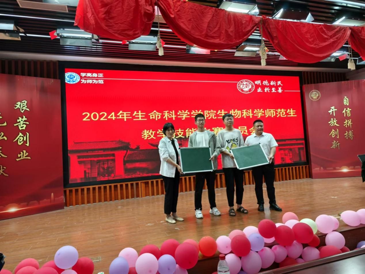 宋永鹏介绍了本科师范生教学技能比赛的背景、意义和要求。他讲到教学技能竞赛作为提高师范生教育水平的重要平台,是检验生物科学(师范)专业教学成果的载体,通过掌握前沿教育动态、先进的教学方法更好的适应社会对师范生的需求,希望同学们以赛促学,在实践中提升创新意识和思维能力,取得优异成绩。赵海鹏、学院教师张彤为2022级学生发放用于粉笔字习练的小黑板,并鼓励同学们积极进行三笔字练习,夯实师范生的基本功,为将来从事教师教育工作打下坚实基础。