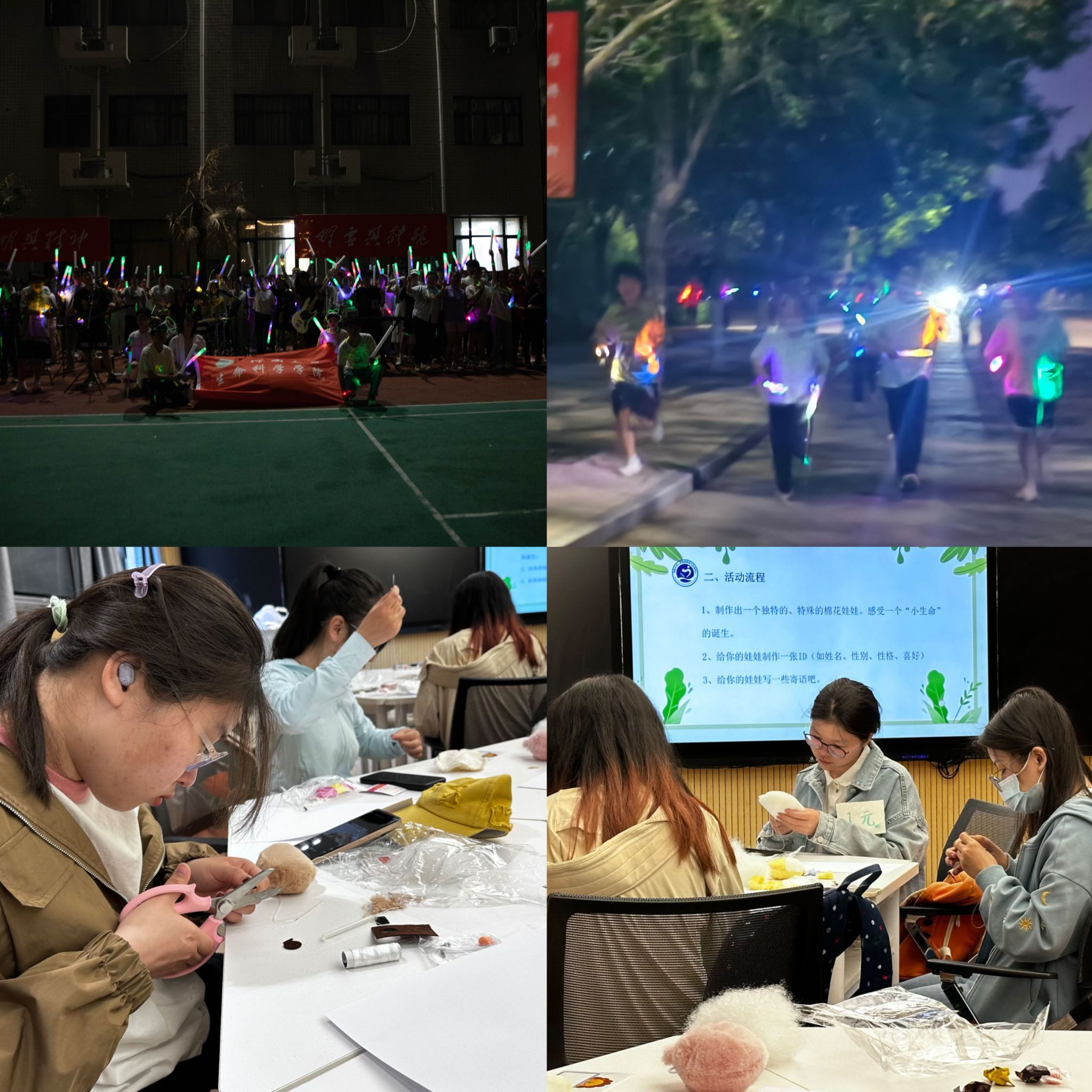 以体强心,赴春山之约。5月18日晚,《荧光派对.“愈”你又约》荧光夜跑活动在学院羽毛球场顺利举办。活动吸引了全院师生百余人参与,为学生提供了释放压力、放松心情的渠道。夜跑路线从生科院羽毛球场出发,沿着学校主干道行进,全程将近3公里。夜跑中学生们在跑道上尽情挥洒汗水,用动感酷炫和闪闪荧光照亮了校园的夜色,照亮夜空中前进的目标和方向。没有疲倦,没有懈怠,没有放弃,只有满满的活力和拼劲。