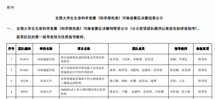 近日,全国大学生生命科学竞赛(2024,科学探究类)河南省赛区决赛在周口师范学院成功闭幕,比赛首次采取省赛、国赛二合一的方式进行。经过网络评审、参赛项目PPT展示、选手答辩、专家评审等环节,永利集团304am登录共荣获国家一等奖(省级特等奖)2项、国家二等奖(省级一等奖)4项、国家三等奖(省级二等奖)14项和省级三等奖17项,同时获优秀组织奖;上述奖项中,包含永利集团304am登录国家一等奖(省级特等奖)2项、国家二等奖(省级一等奖)2项、国家三等奖(省级二等奖)9项和省级三等奖11项。