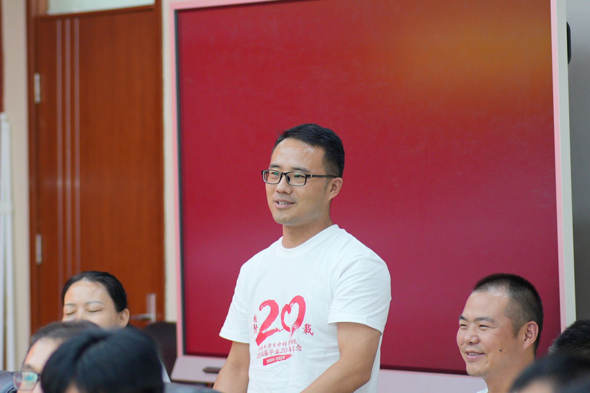 宋纯鹏、王天仕、苗琛等教师代表逐一表达了对各位校友的真诚欢迎和美好祝愿,回忆了与04届毕业生在校期间的美好时光,对学院莘莘学子在不同的领域贡献的生科力量表示肯定。老师们纷纷感慨与同学们虽久别重逢却仍亲若一家人,二十年光阴,河大学子最难能可贵的是始终忠于生命、忠于事业、忠于生活,这份“亲情”历久弥新;毕业二十年的这段时期,是人生实现凤凰涅槃转化的重要节点,2024年的夏天对于04届永利集团304am登录毕业生而言具有重要的纪念意义;“校友就是学校的财富”,希望历届校友持续关注和支持学校、学院的发展,共同进步、一同成长。
