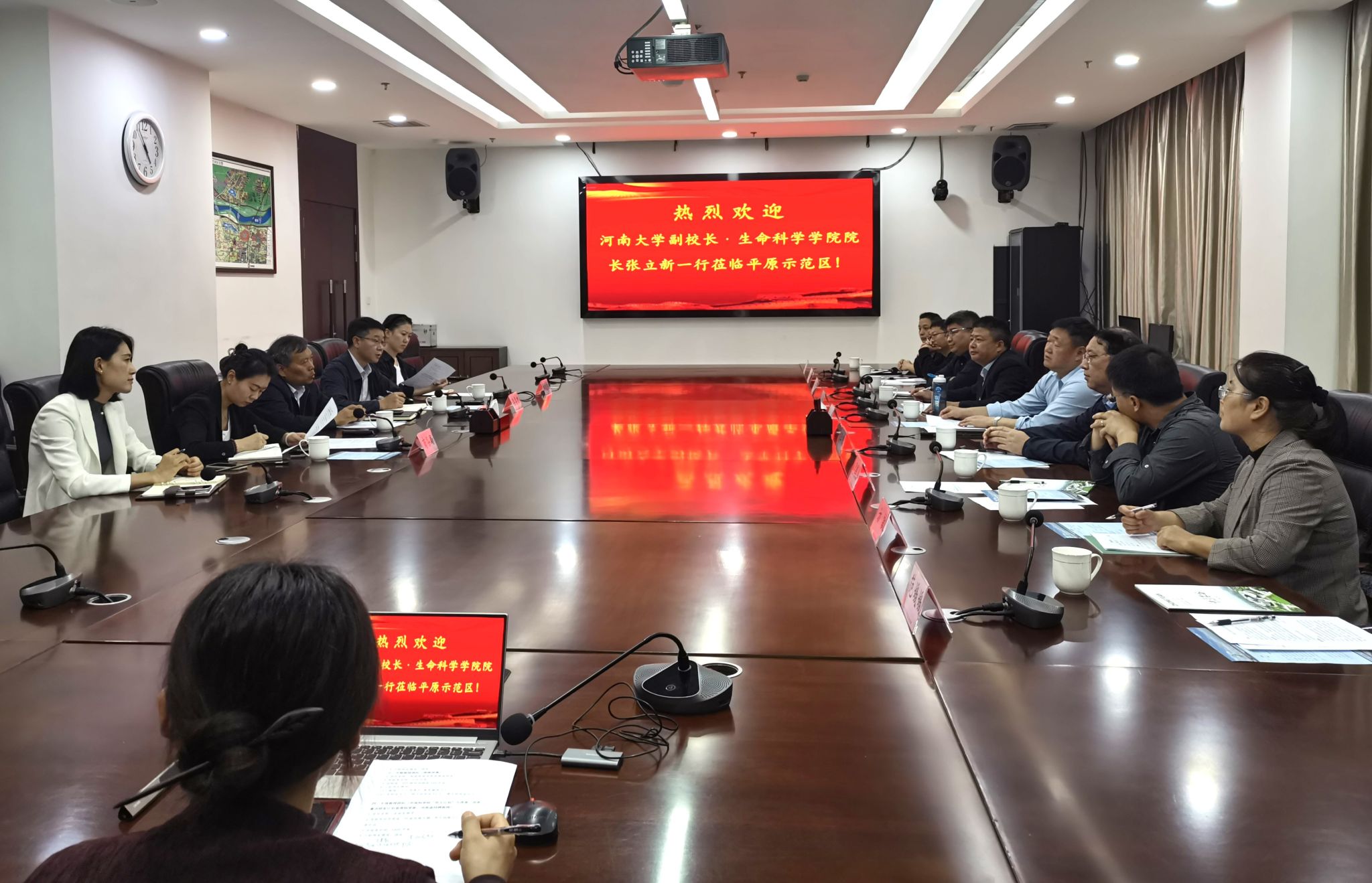 座谈会上,双方首先观看了中原农谷宣传片,对中原农谷的发展现状和未来规划进行了深入的了解。王刚介绍了生物学科的发展状况和科研成果,就实验用田、实验室空间和入驻师生等方面与相关部门进行了深入交流。苏鹏重点介绍了拟入驻中原农谷的科研团队及平台建设的基本情况。