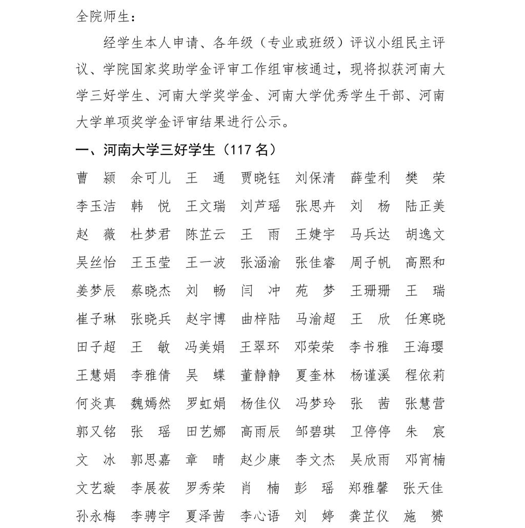 永利集团304am登录2021-2022学年本科生评先奖优拟获奖名单公示