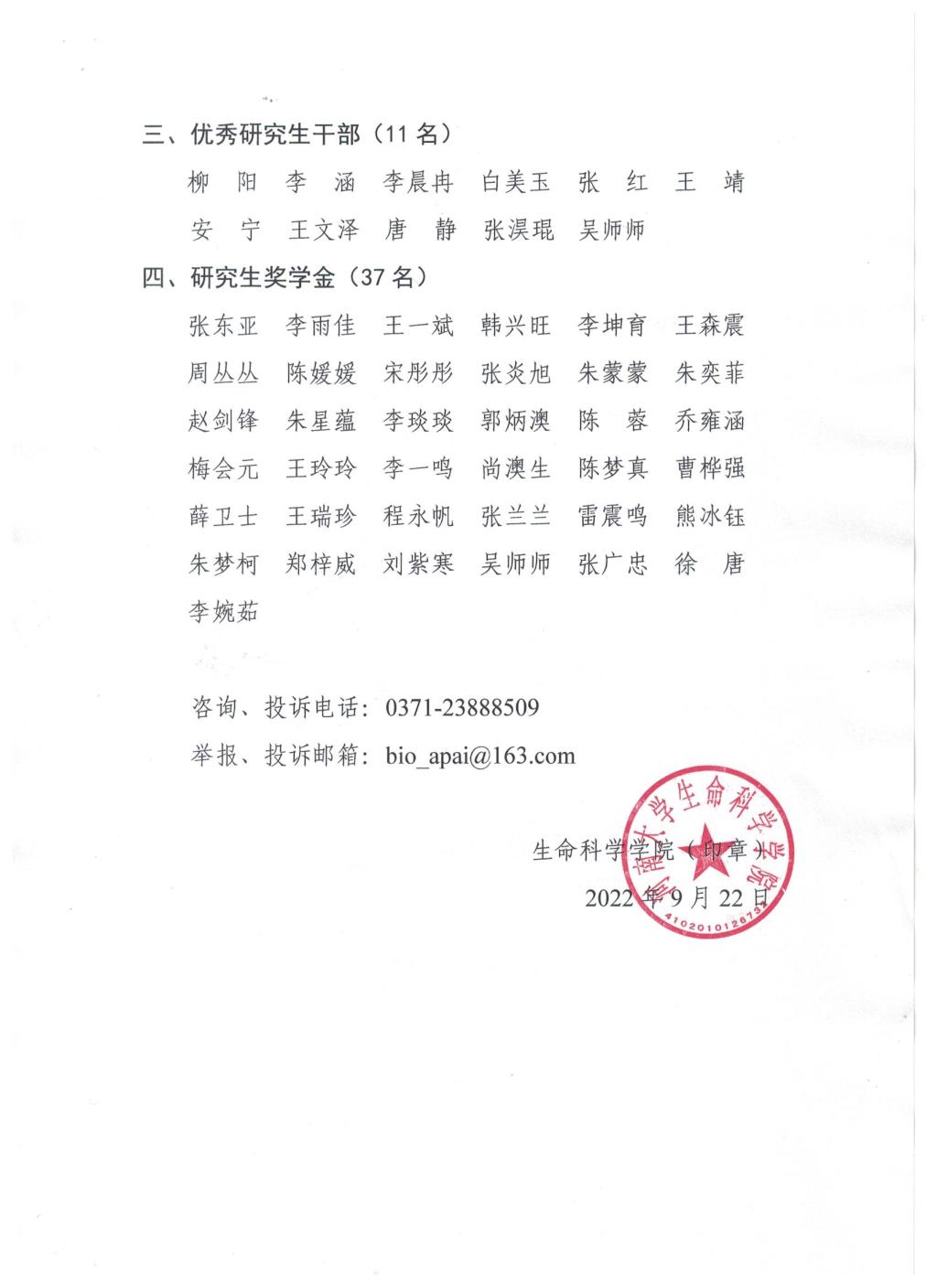 永利集团304am登录2022年研究生先进集体、先进个人和国家奖助学金评选结果公示